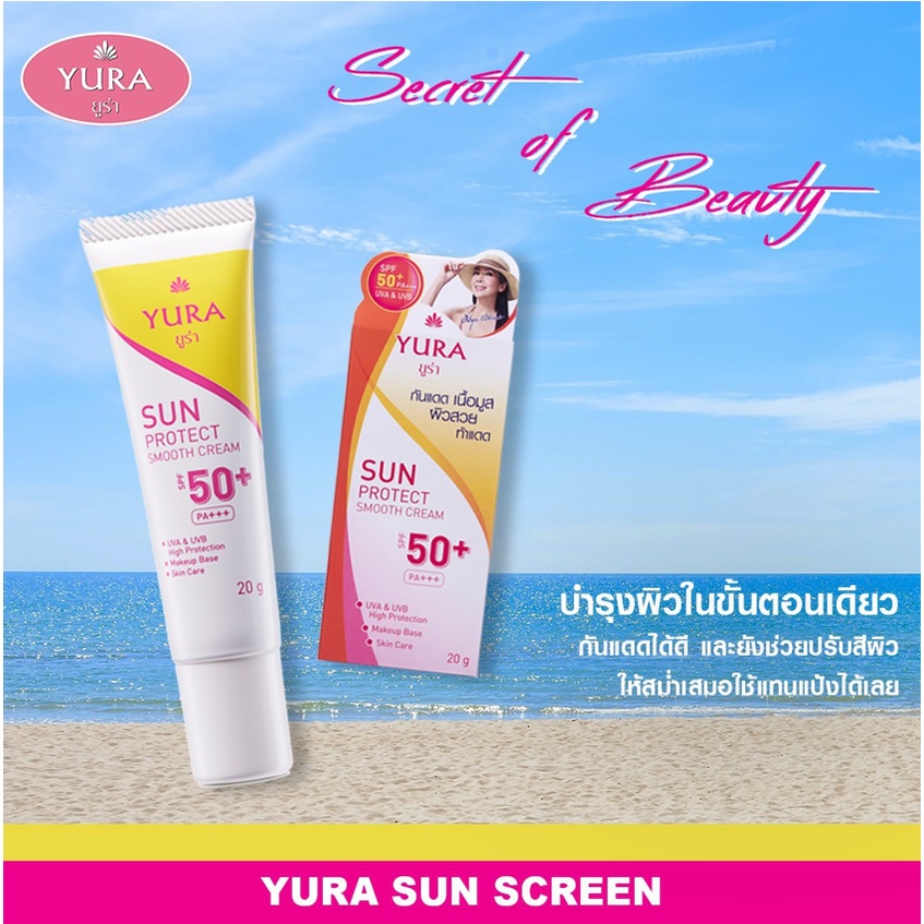 โปรซื้อ กันแดด ฟรี สบู่ Yura Sun Protect Smooth ยูร่า ซัน โพรเทค สมูท ครีมกันแดด SPF50+ PA+++ 20g.