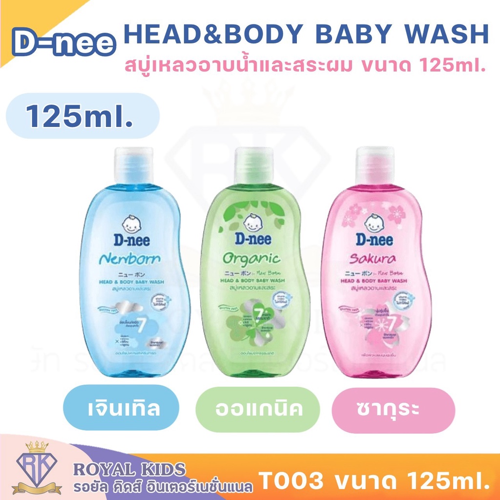 T003 D-Nee ดีนี่ สบู่และยาสระผมเด็ก สบู่เหลวอาบและสระสำหรับเด็ก Sakura,Organic,Newborn ขนาด 125มล.(1 ขวด)