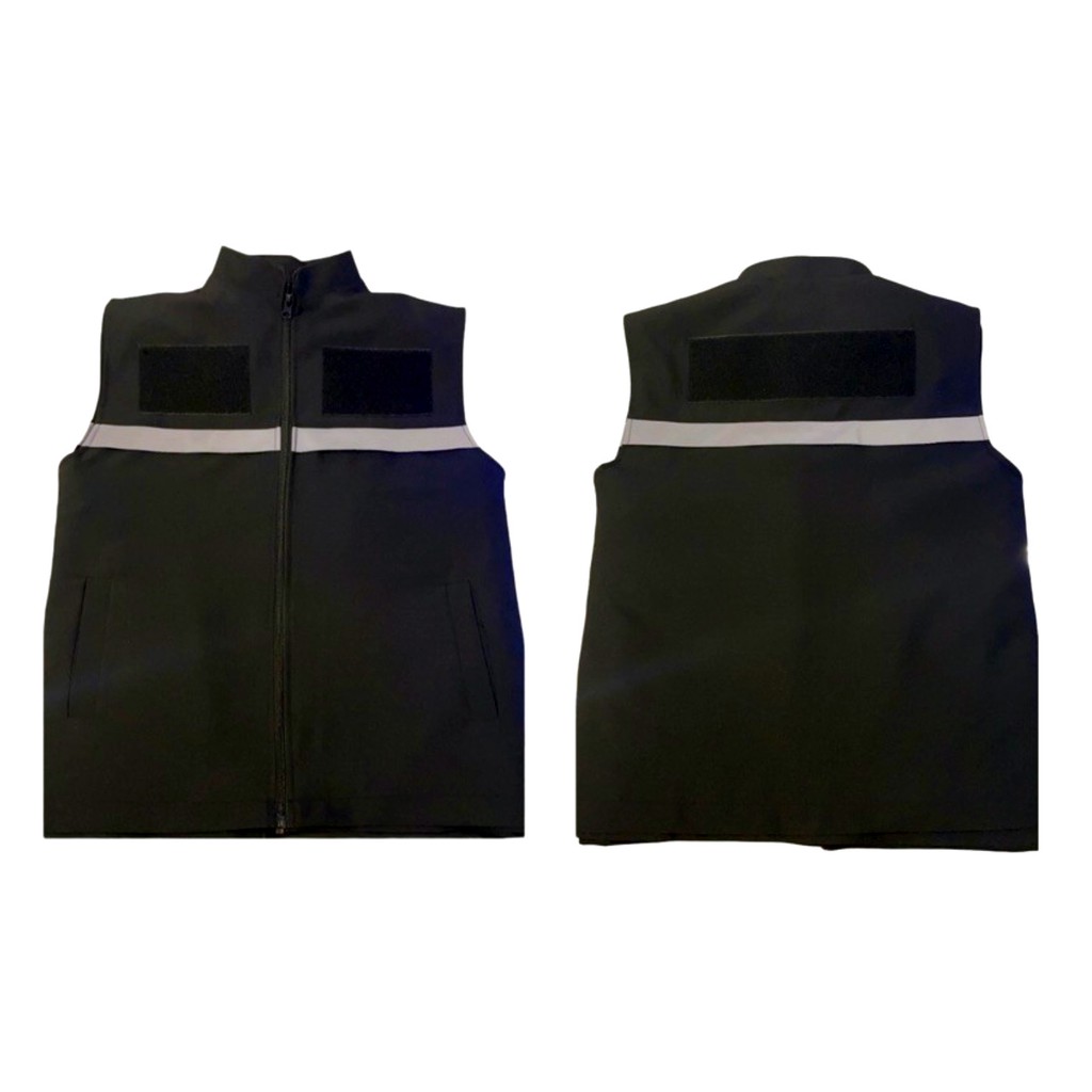 เสื้อกั๊กสีดำ ติดแถบสะท้อนแสงหน้า-หลัง เนิ้อผ้าเบา ใส่สบาย ทรงสวย ตัดเย็บอย่างดี มีตีนตุ๊กแกสำหรับติดเครื่องหมายบริเวณอก ทั้ง 2 ข้าง และด้านหลัง รอบอกเสื้อกั๊ก แบบมีตีนตุ๊กแก SSS = 36" SS = 38" S = 40" M = 42" L = 44" XL = 46" XXL = 48" 3XL = 50" 4XL = 52" 5XL