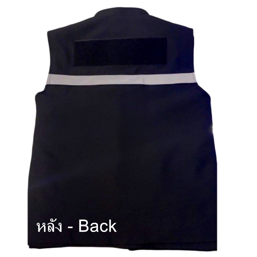 เสื้อกั๊ก สีดำ ติดแถบสะท้อนแสง อสม ตำรวจ