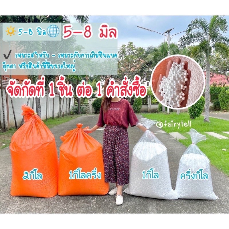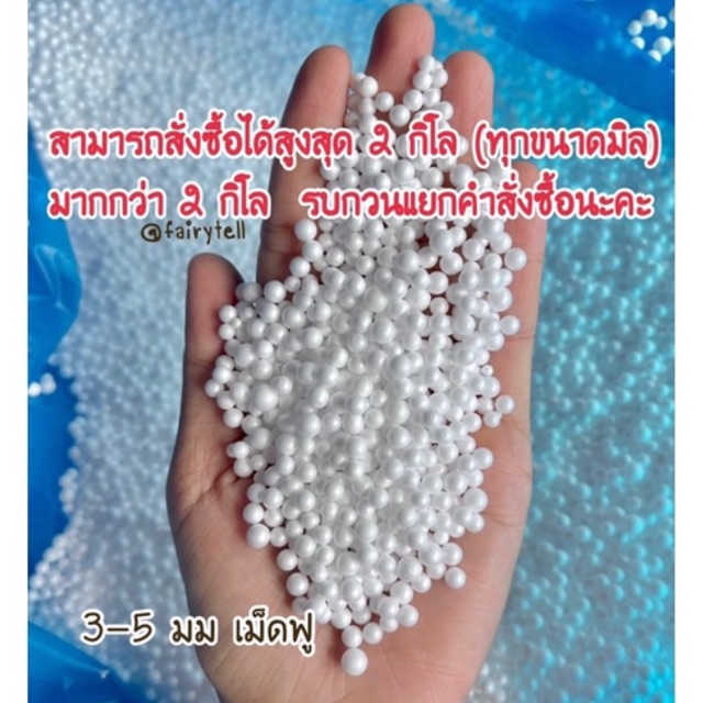 ... ะไม่เปราะ 😍👍 ———————————————————————— 🤍กดสั่งสูงสุด 1 ชิ้นต่อคำสั่งซื้อนะคะ เนื่องจากทางขนส่งมีจำกัดขนาดพัสดุไว้ค่ะลูกค้า 🤍 ——————————————————————— ♻️เม็ดโฟมเบอร์ 6-9มม♻️ 🔅คุณสมบัติ🔆 • เม็ดโฟม EPS(Expandable Polystyrene) เกรดเฟอร์นิเจอร์ (1) น้ำหนักเบา แต่สามารถรับน้ำหนักได้ (2) มีความยืดหยุ่น กันแรงกระแทกได้ดี (3) เนื้อโฟมละเอียด บีบไม่แตกง่าย ไม่เปราะ (4) มีความคงทน ไม่ยุบง่าย ใช้งานได้นาน (5) มีคุณสมบัติเป็นฉนวนกันความร้อนเก็บความเย็น (6) ปลอดกลิ่น ไม่มีสารพิษ • เม็ดโฟมทรงกลม สีขาวสะอาด ✔️ เหมาะสำหรับ - เหมาะกับการเติมบีนแบค ตุ๊กตา หรือสินค้าที่มีขนาดใหญ่ ⚠️ คำเตือน ⚠️ - เม็ดโฟมมีน้ำหนักเบา ควรเปิดถุงในบริเวณที่ไม่มีลม - ควรเตรียมเครื่องดูดฝุ่นสำหรับทำความสะอาดเม็ดโฟม - ระวังเม็ดโฟมเข้าหู ปาก หรือช่องทางต่างๆ - เก็บให้ห่างจากเด็ก
