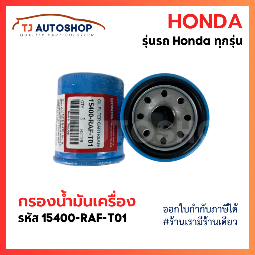 HONDA กรองเครื่อง ฮอนด้า สำหรับ HONDA ทุกรุ่น กรองน้ำมันเครื่อง รหัสแท้ 15400-RAF-T01