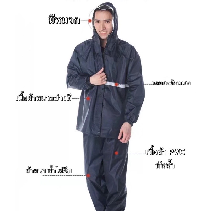 ชุดกันฝน เสื้อกันฝน มีแถบสะท้อนแสงพร้อมหมวกได้ครบชุดพร้อม กางเกง