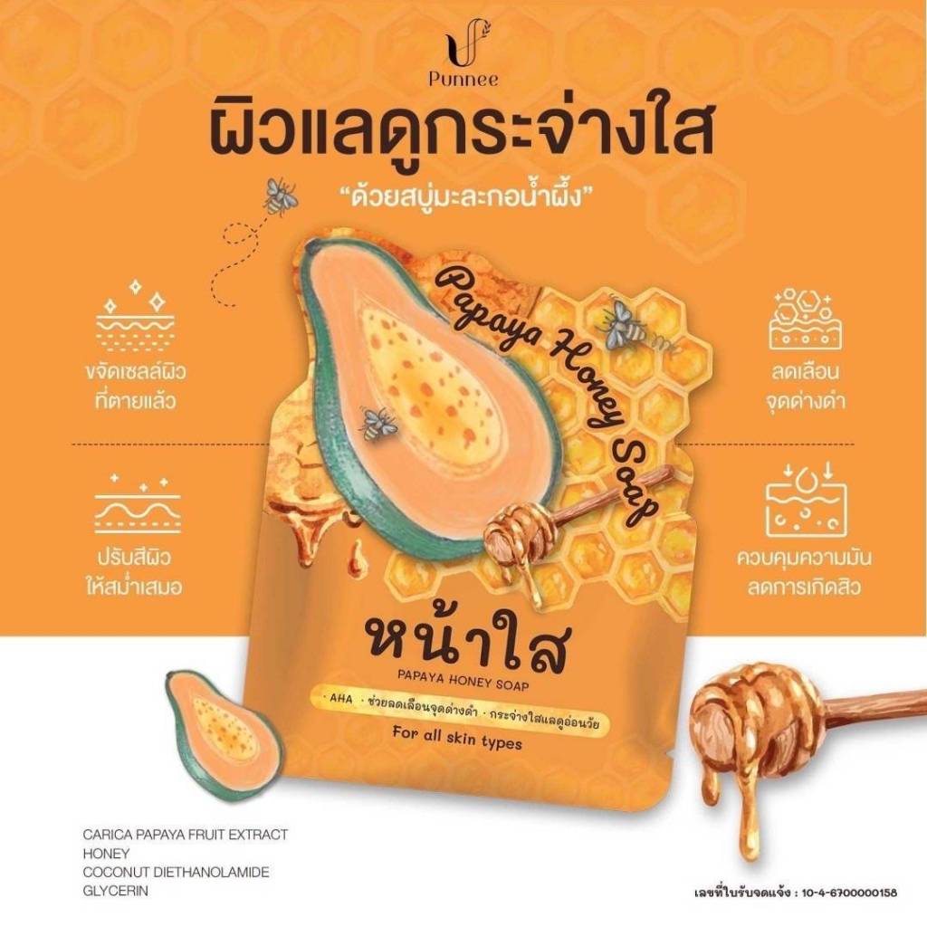 สบู่ Papaya Honey 🌻ส่วนผสมจากธรรมชาติ 100% 🌻ผสานคุณค่าจากเอนไซม์น้ำผึ้งและมะละกอ 🌻เนื้อฟองละเอียด นุ่ม ทำความสะอาดล้ำลึก 🌻ช่วยผลัดผิวเสีย เผยผิวสวยของคุณ เปลี่ยนหน้าพัง ให้ปังสวยใสกว่าที่เคย✨ จบปัญหาผิวด้วยสบู่ Papaya Honey✨ #สบู่หน้าใส #papayahoneysoap