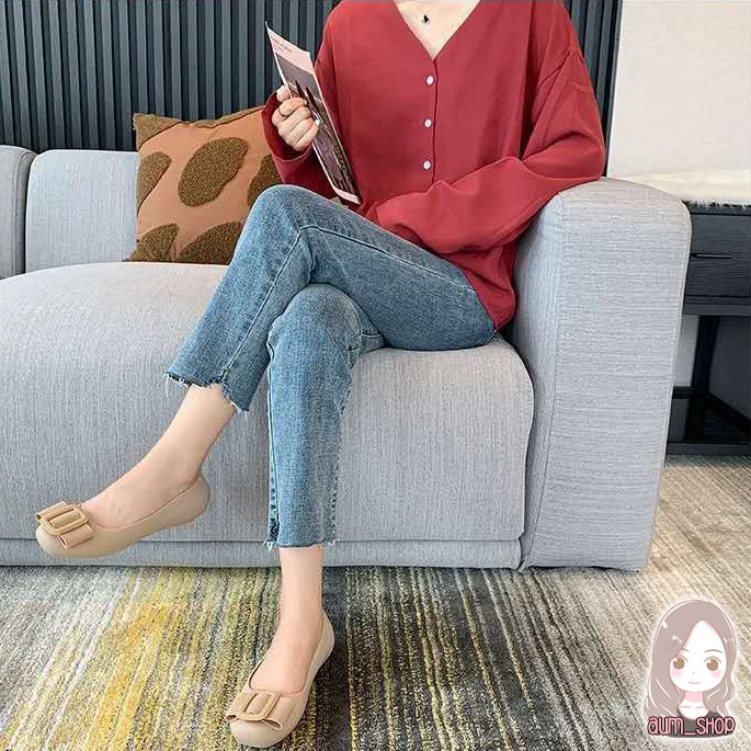 รองเท้าคัทชู รองเท้าผู้หญิง แต่งหัวเข็มขัด สวมใส่สบาย ไม่กัดเท้า T72