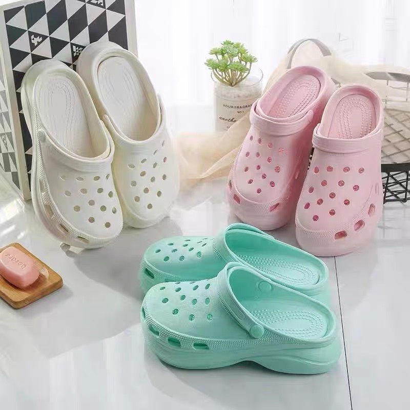 SHO-H-11 🕊️ รองเท้าหัวโต แบบสวม สีพื้น ใส่สบาย ส้นหนา ไม่ได้แถมตัวติด พร้อมส่ง MAKATA