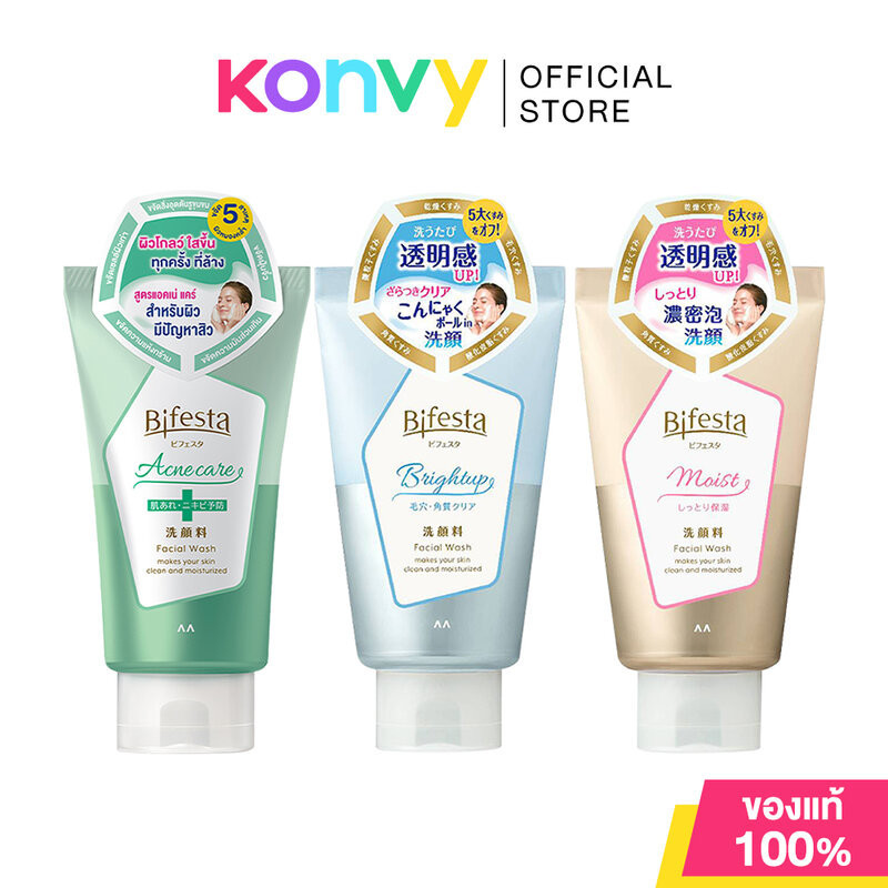 ... ็นสาเหตุให้ก่อให้เกิดสิว ทำให้ผิวฉ่ำ ไม่แห้งตึงหลังล้างหน้าด้วยลาเวนเดอร์ ออยล์ สารสกัดจากธรรมชาติ •Bifesta Facial Wash Brightup 120g โฟมล้างหน้าสูตรเพื่อผิวเนียน กระจ่างใส มีออร่าเหมาะสำหรับผิวหมองคล้ำผิวไม่สม่ำเสมอ มีเม็ดบุกญี่ปุ่นนุ่มๆ ทำความสะอาดสิ่งสกปรกสะอาดหมดจด และล้ำลึกถึงรูขุมขน (ความมัน, สิ่งอุดตัน,ฝุ่นจิ๋ว, เซลล์ผิวเก่า, ความแห้ง) สามารถขจัดเซลล์ผิวเก่าได้ล้ำลึก (สาเหตุของผิวหมองคล้ำ) ผิวไม่แห้งตึงหลังล้างหน้าด้วยลาเวนเดอร์ออยล์จากธรรมชาติ •Bifesta Facial Wash Moist 120g โฟมล้างหน้าสูตรทำความสะอาดสิ่งสกปรกสะอาดหมดจด และล้ำลึกถึงรูขุมขน (ความมัน, สิ่งอุดตัน, ฝุ่นจิ๋ว, เซลล์ผิวเก่า, ความแห้ง) อุดมสารสกัดจากส้ม แมนดาริน ช่วยปรับสมดุล เติมความชุ่มชื้น เพื่อผิวฉ่ำเด้งยาวนาน ไม่แห้งตึงหลังล้างหน้าด้วยลาเวนเดอร์ออยล์จากธรรมชาติ วิธีใช้: บีบโฟมลงบนฝ่ามือที่เปียก ผสมน้ำเล็กน้อยแล้วตีให้เกิดฟอง นวดวนให้ทั่วใบหน้าแล้วล้างออกด้วยน้ำเปล่า