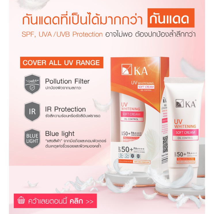 (liveลด50%)(หลอด) KA UV WHITENING SOFT CREAM SPF 50+ PA++++ 15g เคเอ ยูวี ไวท์เทนนิ่ง ซอฟ ครีมกันแดดขนนก