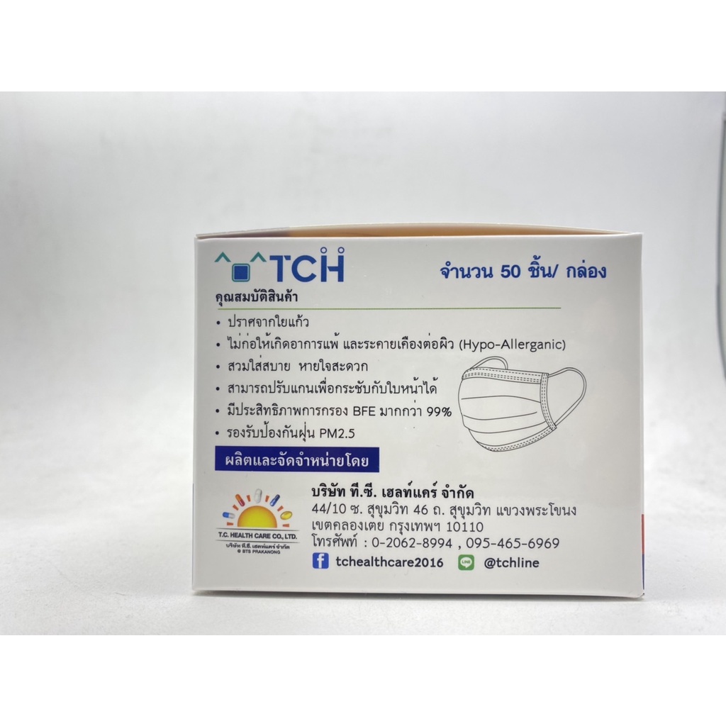 TCH Mask 3PLY ทีซีเอช หน้ากากอนามัยทางการแพทย์ 3 ชั้น (1 กล่อง 50ชิ้น)