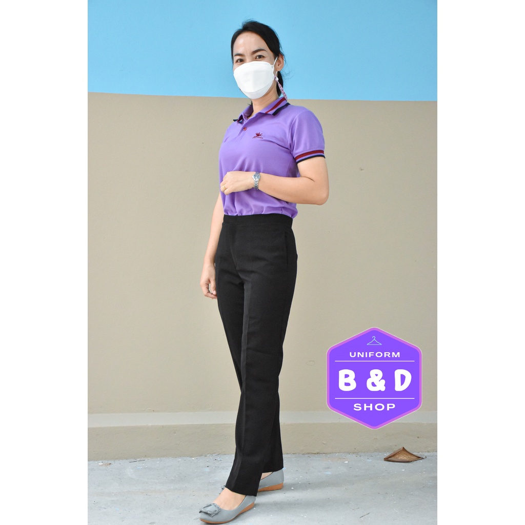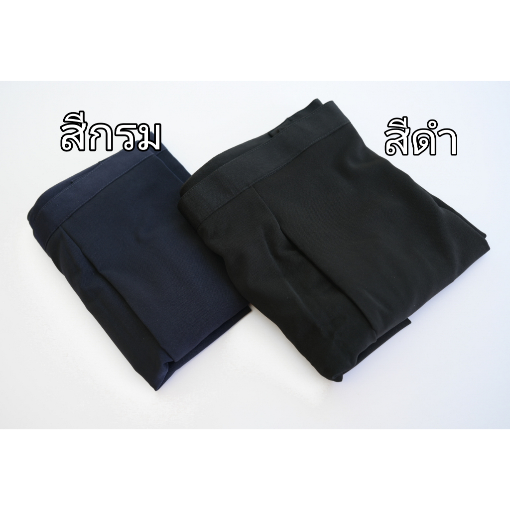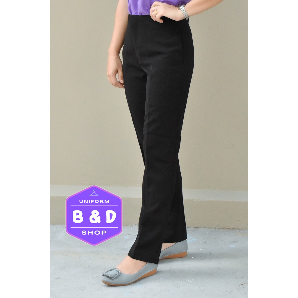 กางเกงสแลคหญิง ขากระบอกเล็ก ผ้ายืด นาโน สีดำ ซิปหน้า ตะขอบน ไม่ขึ้นขน ใส่สบาย