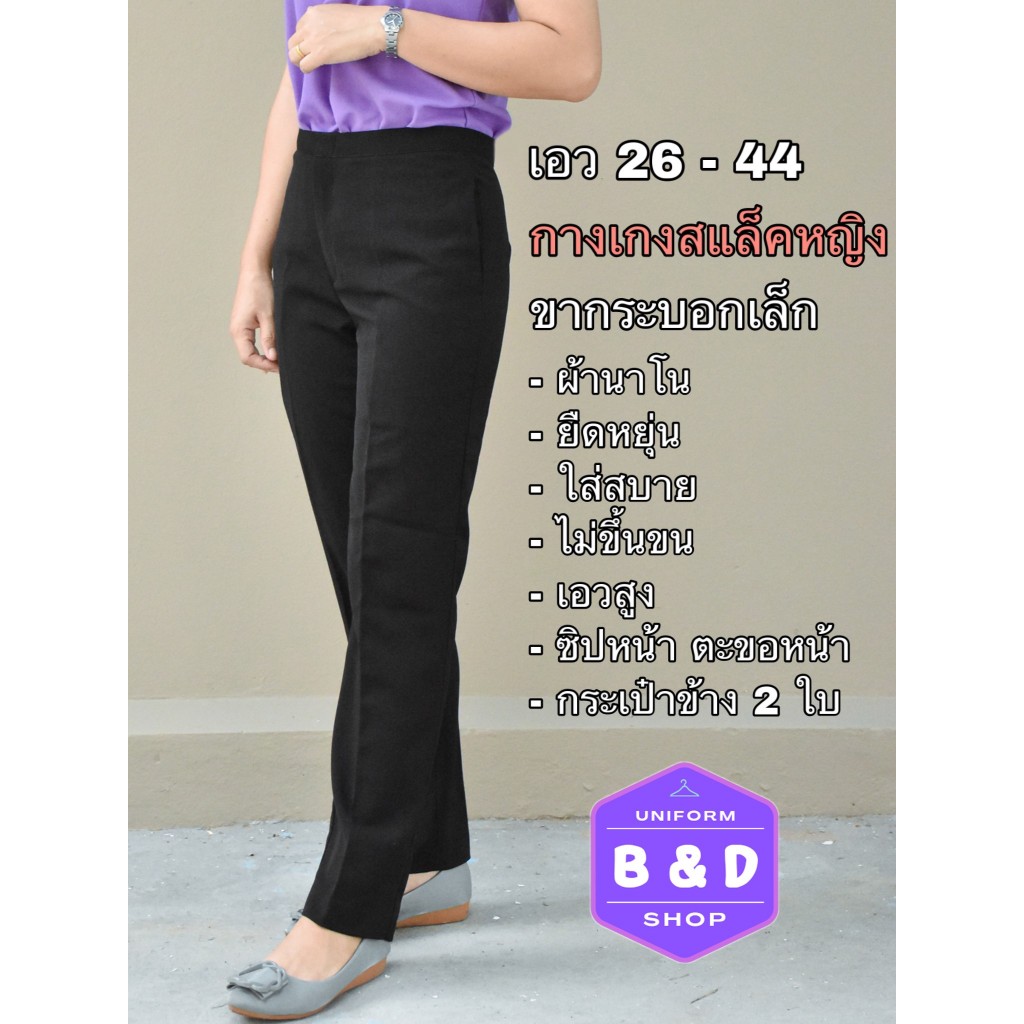 กางเกงสแลคหญิง ขากระบอกเล็ก ทรงสุภาพ ไม่รัดรูป ผ้ายืด นาโน สีดำ ซิปหน้า ตะขอ กระเป๋าข้าง 2 ใบ ไม่ขึ้นขน ใส่สบาย +++++++++ ปกติแนะนำลูกค้าเลือกตามเอวค่ะ มีตารางขนาดกางเกงที่รูปสุดท้ายค่ะ ในรูปนางแบบสูง 163 ค่ะ ถ้าสั่งไปแล้ว คับ-หลวม ขอเปลี่ยนได้ค่ะ อย่าเพิ่งใช้งานหรือว่าซักนะคะ