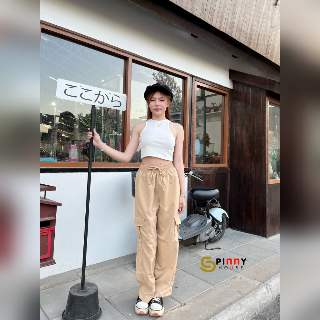 🌈 SpinnyHouse 🌈 กางเกงคาร์โก้ ขากระบอก ผ้าไมโครเนื้อดี💛งานสวย แมชง่าย ดีเทลกระเป๋าข้าง สไตล์วัยรุ่น รุ่น กางเกงคาร์โก้