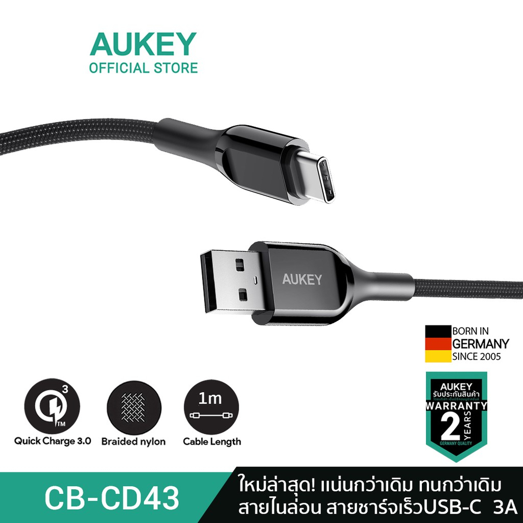 ... C ความยาว 1.2 เมตร และ 2 เมตร เวอร์ชั่น USB 2.0 โอนถ่ายข้อมูล 480 mbps เมื่อเปรียบเทียบความเร็วในการถ่ายโอนข้อมูลระหว่าง สาย AUKEY กับ สายเท่าไป(USB 2.0) ออกแบบมา เพื่อการพกพาที่สะดวกมากขึ้น ทนทานต่อการใช้งานกว่าสายทั่วไปถึง 6 เท่า และ รองรับการชาร์จเร็วแบบ Quick Charge สามารถรองรับไฟได้สูงสุด 3A มีตัวต้านทาน 56k Ohm Resistor ช่วยป้องกันลัดวงจรในสาย -----จุดเด่นสินค้า----- - ชาร์จเร็ว 3A รองรับQualcomm Quick3.0,Huawei FCP, Samsung AFC - ใช้วัสดุ High-End มีตัวต้านทาน 56k Ohm Resistor ช่วยป้องกัน ไม่ให้เกิดการลัดวงจรในขณะที่ใช้งาน - ถ่ายโอนข้อมูลด้วย USB 2.0 ถ่ายข้อมูลโอนถ่ายข้อมูล 480 mbps - ภายในสาย มีฉนวนกันคลื่นสัญญาณรบกวน ที่จะช่วยให้การซิงค์ ถ่ายโอน ข้อมูลได้ไวมากขึ้น ไม่ถูกสัญญาณภายนอกรบกวน - หุ้มไนล่อนถักแบบเส้นคู่ ทนทานต่อการบิดงอถึง 10 เท่า หัวสายชาร์จทำจากHard PVC แข็งแรงและยืดหยุ่นสูง - สายชาร์จเป็นหัวแบบ USB-C / TYPE-C ใช้ได้กับ Smart Phone, Tablets และ smartphone รุ่นอื่นๆ ที่ใช้ช่องเสียบแบบ USB-C / TYPE-C -----สเปคสินค้า----- Specifications Product Code : CB-CD43, CB-CD44 Technology: USB 2.0 Type: USB-A to C Material: Nylon Length: 3.3ft / 1 m , 6.6ft / 2m -----อุปกรณ์ภายในกล่อง----- 1 x สายเคเบิล USB-A to USB-C -----ควรใช้ร่วมกับ----- หัวปลั๊กชาร์จเร็ว AUKEY อาทิ PA-T11/ PA-T14 / PA-U36/ PA-U32 หรือหัวปลั๊กชาร์จเร็วที่มีช่อง USB-A -----อุปกรณ์ที่รองรับการใช้งาน----- อุปกรณ์ที่มีช่องชาร์จ USB-C , โทรศัพท์ – Android