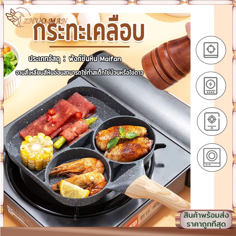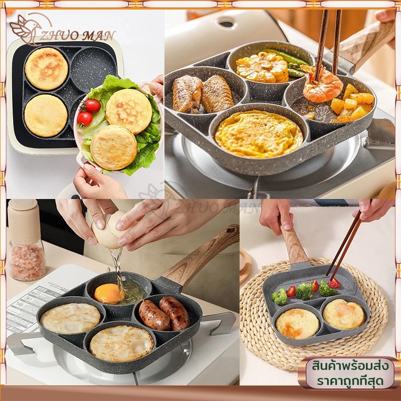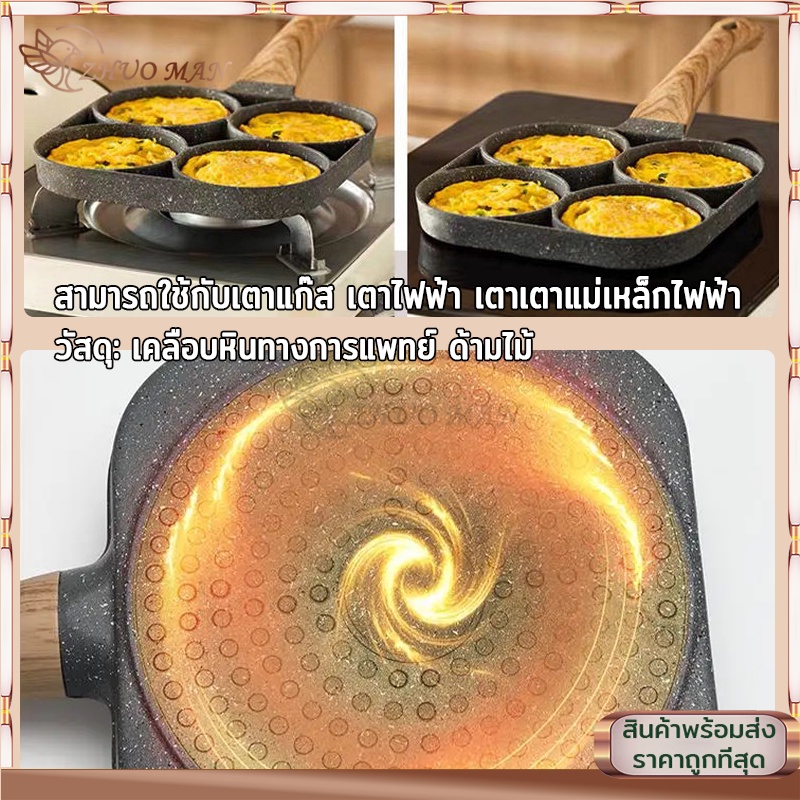 กระทะไข่ดาว กระทะทอดไข่ แพนเค้ก มี2/4หลุม สามารถใช้กับเตาแม่เหล็กไฟฟ้า เคลือบหินไมฟาน แข็งแรง ทนทาน