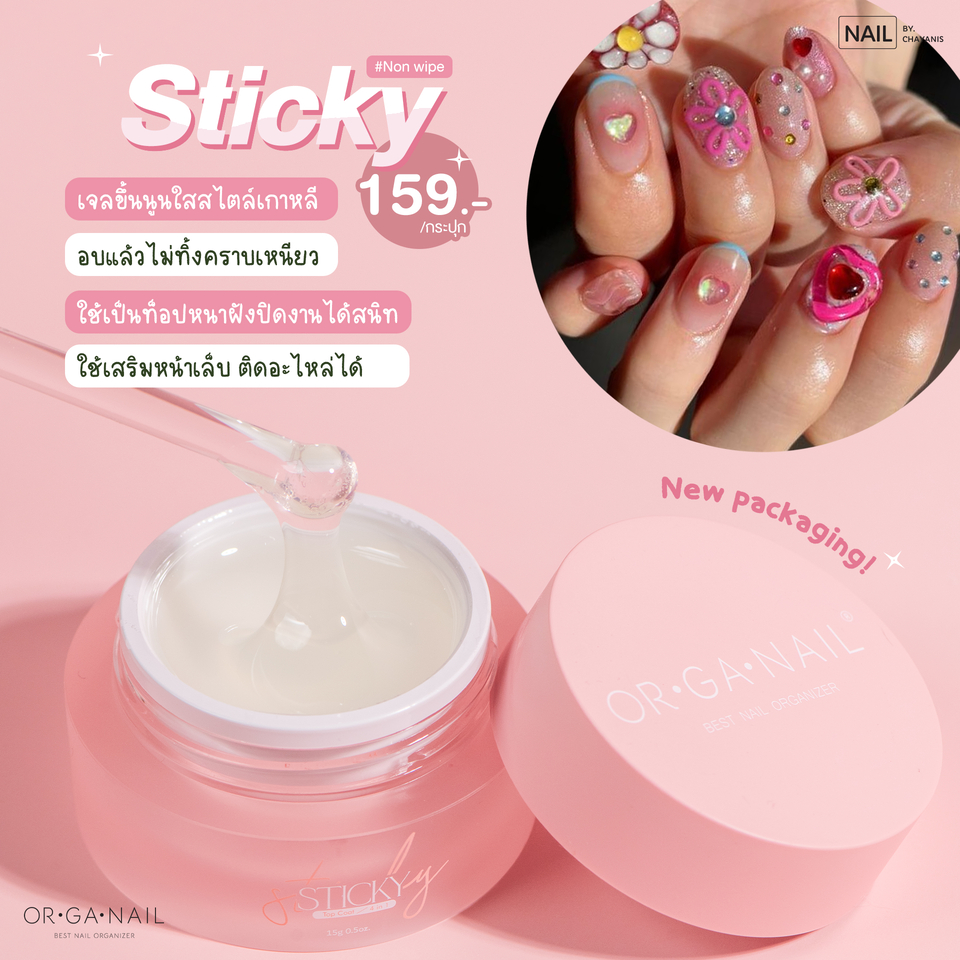 🎊Sticky Top Coat Organail แพกเกตใหม่🎀 สติ๊กกี้ท็อปแบบเกาหลี ที่มีคุณสมบัติ 4 in 1 💖 บรรจุ 15 กรัม และ 30 กรัม กระปุกแบบปั๊ม จะเป็นท็อปเนื้อหนา อบแล้วแห้งเลย - ใช้เป็นท็อปปิดงาน ฝังกากเพชร ฝังฟรอย ฝังผงขัด ฝังสติกเกอร์ ฝังแล้วทนแน่นอน ! - ใช้ติดอะไหล่ เม็ดใหญ่ก็ไม่หวั่น แน่นเอี๊ยด - ใช้ท