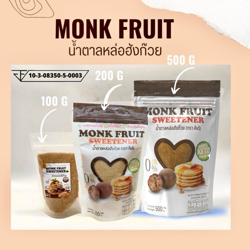 น้ำตาลหล่อฮังก๊วย Monkfruit KETO เกรดพรีเมียม 0 แคลอรี่ 100,200,500กรัม น้ำตาลคีโต น้ำตาลหล่อฮังก๊วย น้ำตาล หล่อฮังก๊วย หวานแต่ดี หวานจากธรรมชาติ ผลิตจากธรรมชาติ เกรดพรีเมี่ยมรสหวานใกล้เคียงน้ำตาลทั่วไปแต่ปราศจากแคลอลี่ ไม่กระตุ้นน้ำตาลในเลือด จึงได้รับความนิยมในหมู่ผู้บริโภคทีต้องการ ควบคุมร