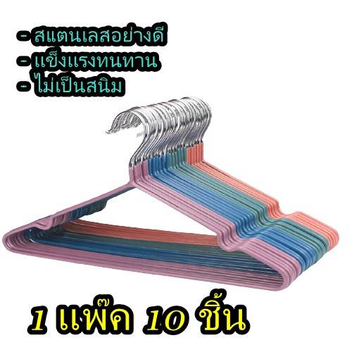 FS(ลูกค้าใหม่1บาท)ไม้แขวนเสื้อสแตนเลส [แพ็ค10ชิ้น] ไม้แหวน ที่ตากผ้า (พร้อมส่งจากไทย)