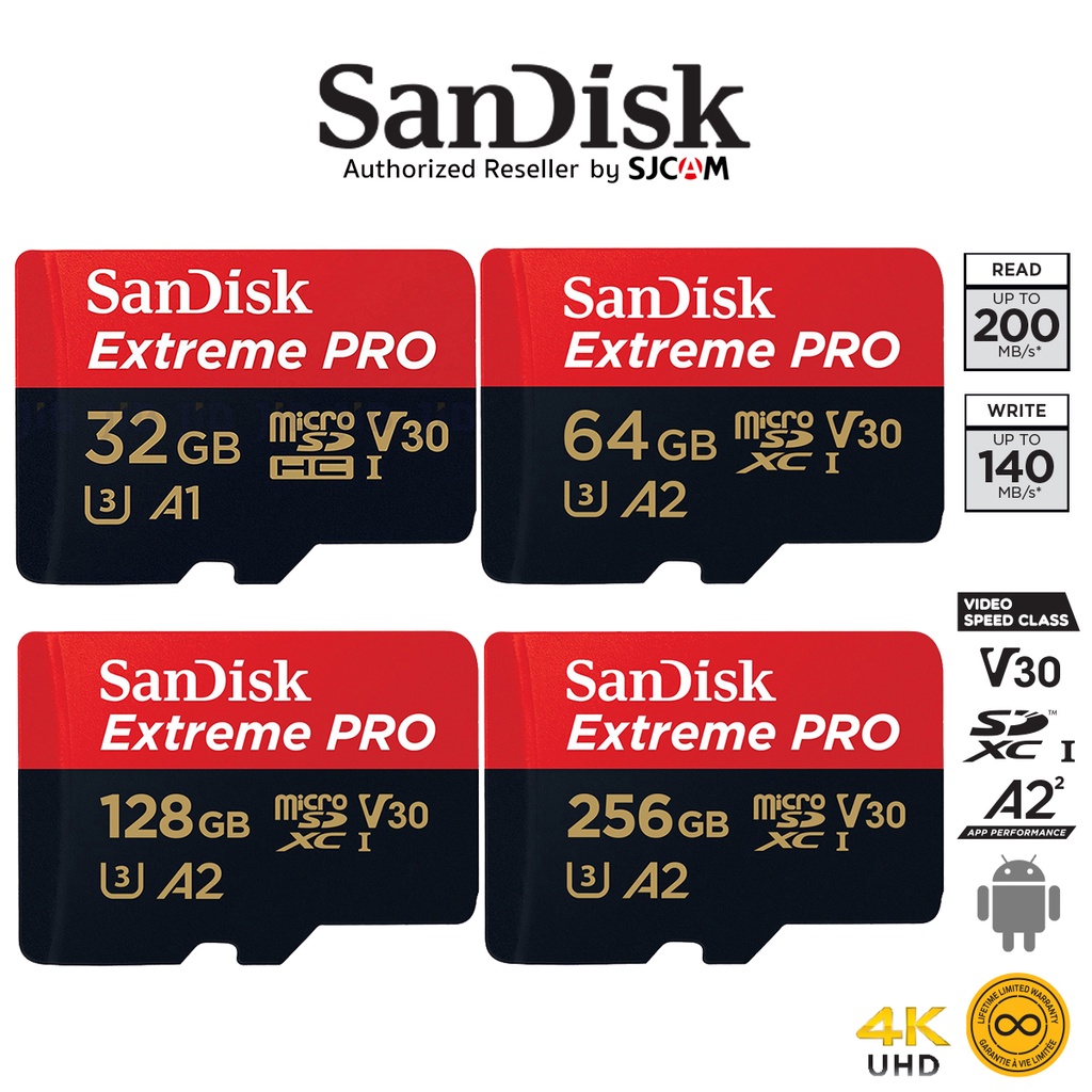 SanDisk Extreme Pro Micro SD Card 5K SDXC 32GB 64GB 128GB 200/90MB/s (SDSQXCD) เมมโมรี่ Gopro Drone