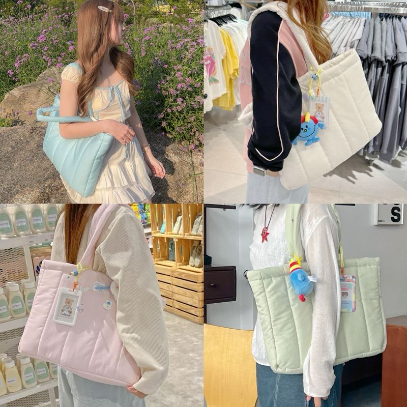 Hi Hi ~ ! Super big cool 💭💗 carryme -tote bag พร้อมส่ง Big Pukpik กระเป๋าผ้าสะพายข้าง บุใย ใส่ notebook tablet ipad สมุดหนังสือได้🛋มีของสุ่มแถม! มาเจอกันกับกระเป๋าปุ๊กปิ๊กไซส์ใหญ่ 6 สี สะพายข้างจุของได้แน่น สาย it เหมาะมาก เพราะน้องมีใยซับสำหรับใส่ mac ipad notebook กันกระแทกได้ค่ะ สายจุของต้องม