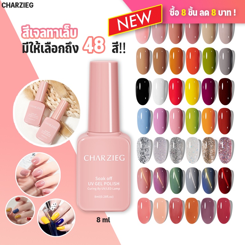 CHARZIEG 48สีสีเจลทาเล็บ Modelones 8MLสีเจล สีทาเล็บเจล ยาทาเล็บเจล