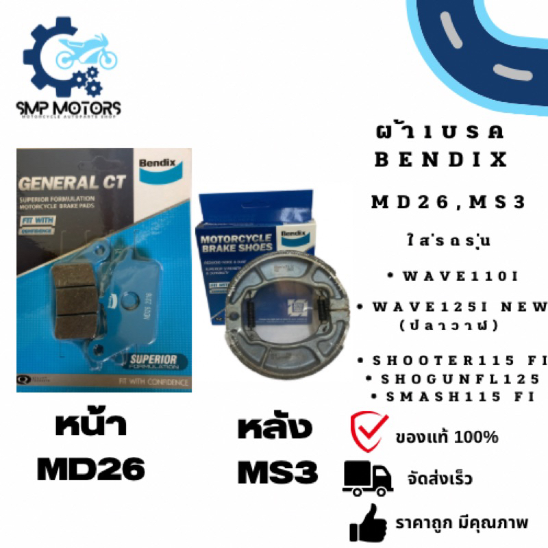 ผ้าเบรกหน้าหลัง Bendix ของแท้ใส่รถ Wave110i เวฟ110i Wave125i new led ปลาวาฬทุกปีSHOOTER115Fi ShogunFL125 MD26,MS3ผ้าเบรค