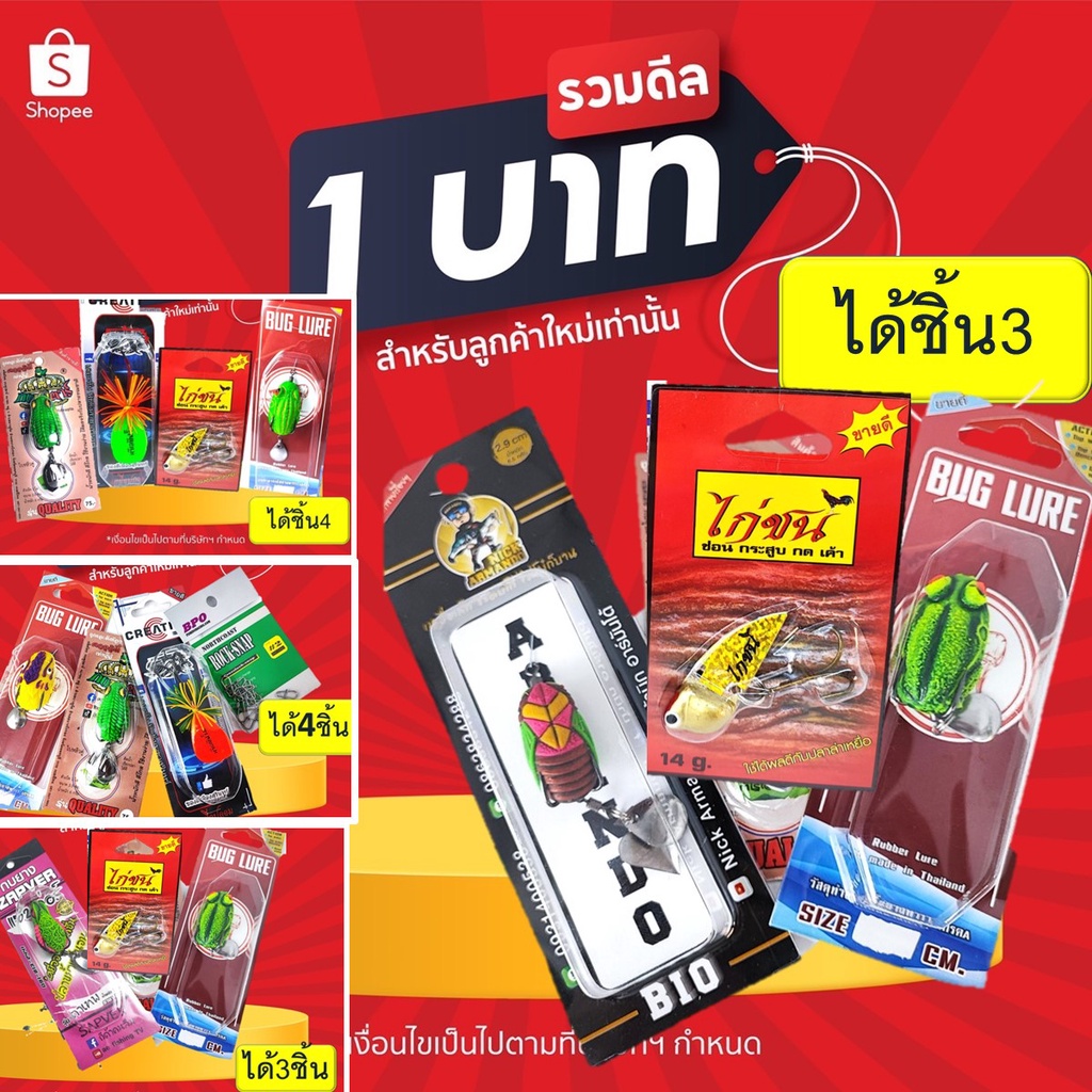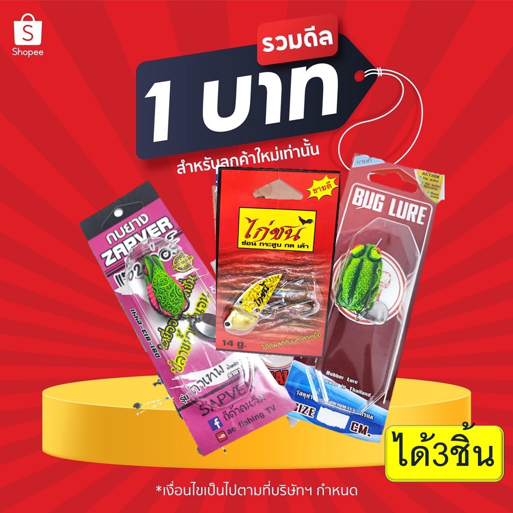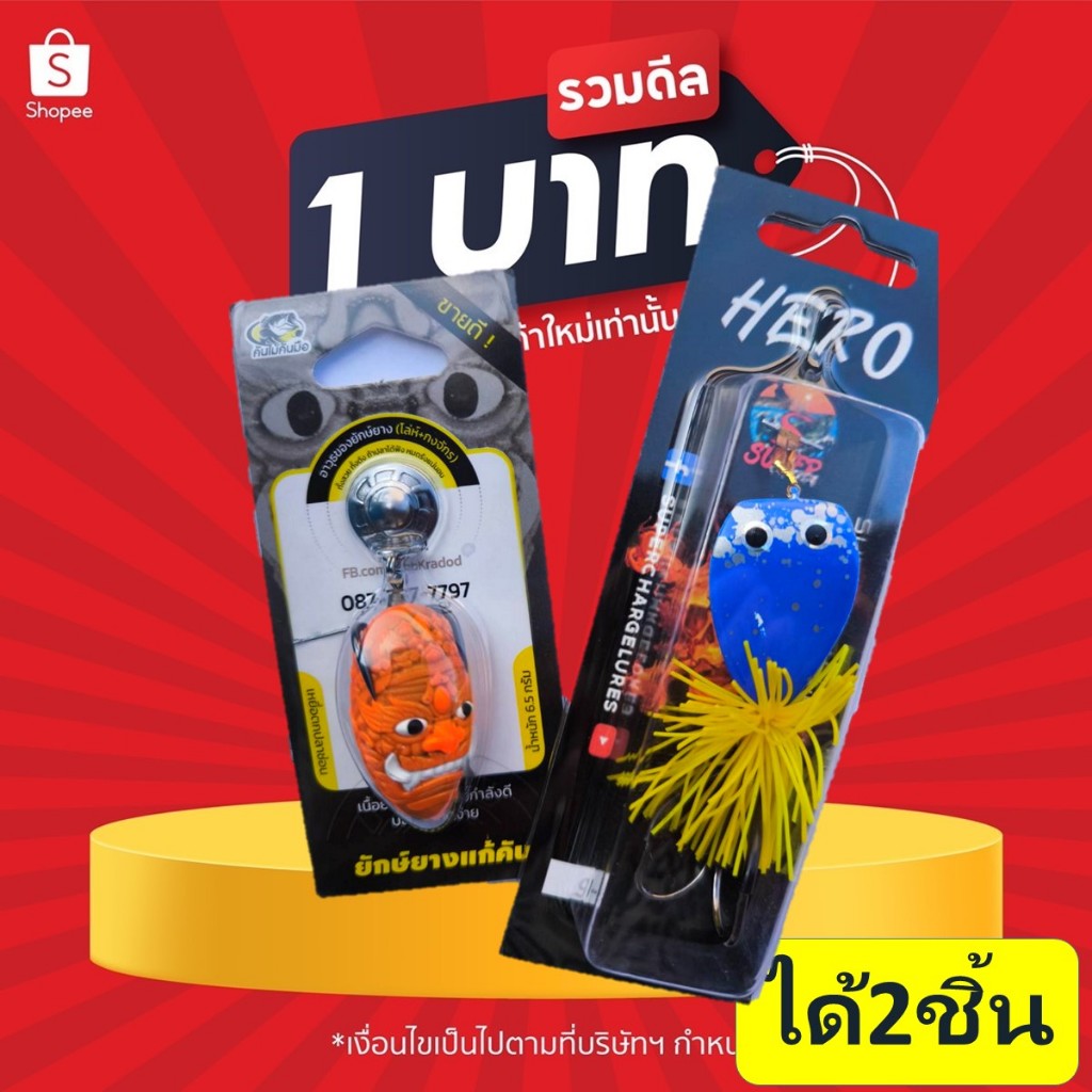 โปร 1 บาท ไอดีใหม่ เหยื่อตกปลา เหยื่อยาง สุ่ม เหยื่อ กบกระโดด/ส่าย + กระดี่ + กบยาง ได้ทั้งหมด 2 -4ชิ้น