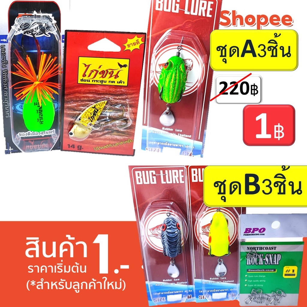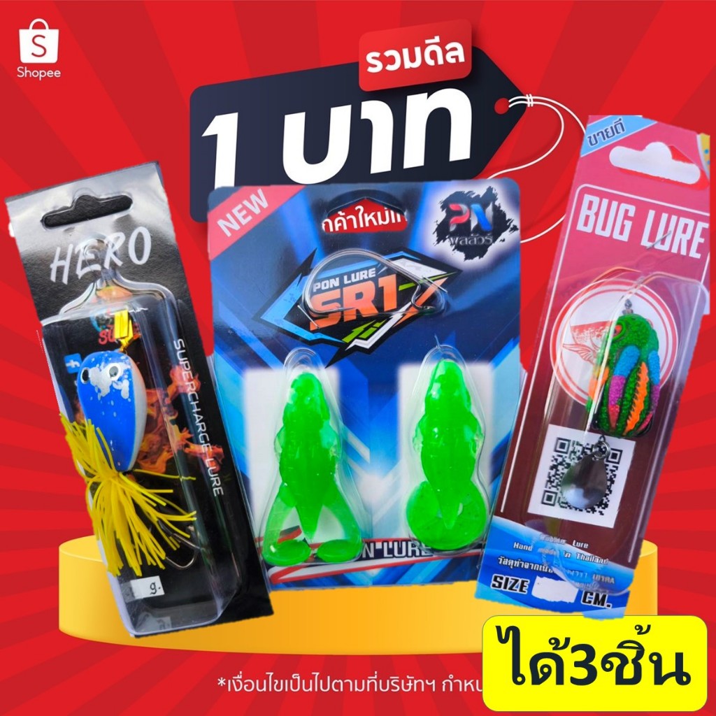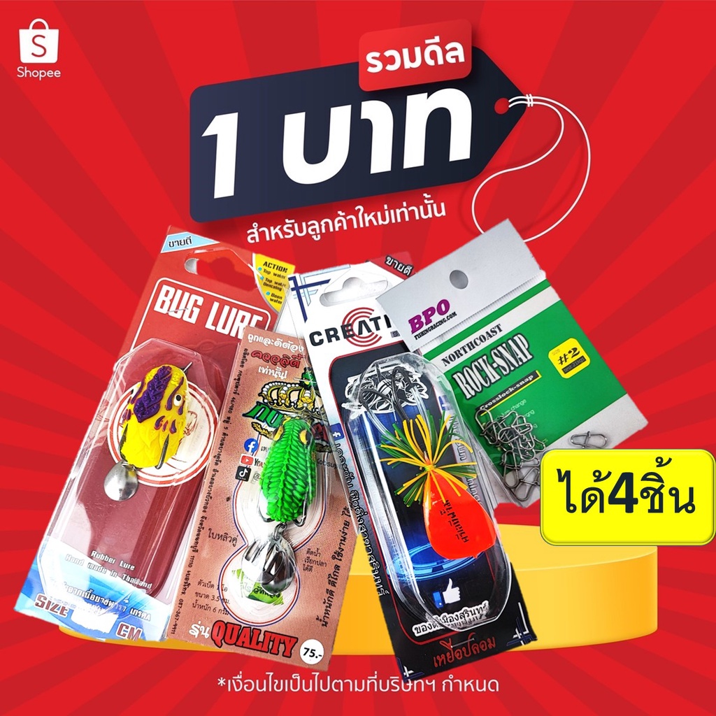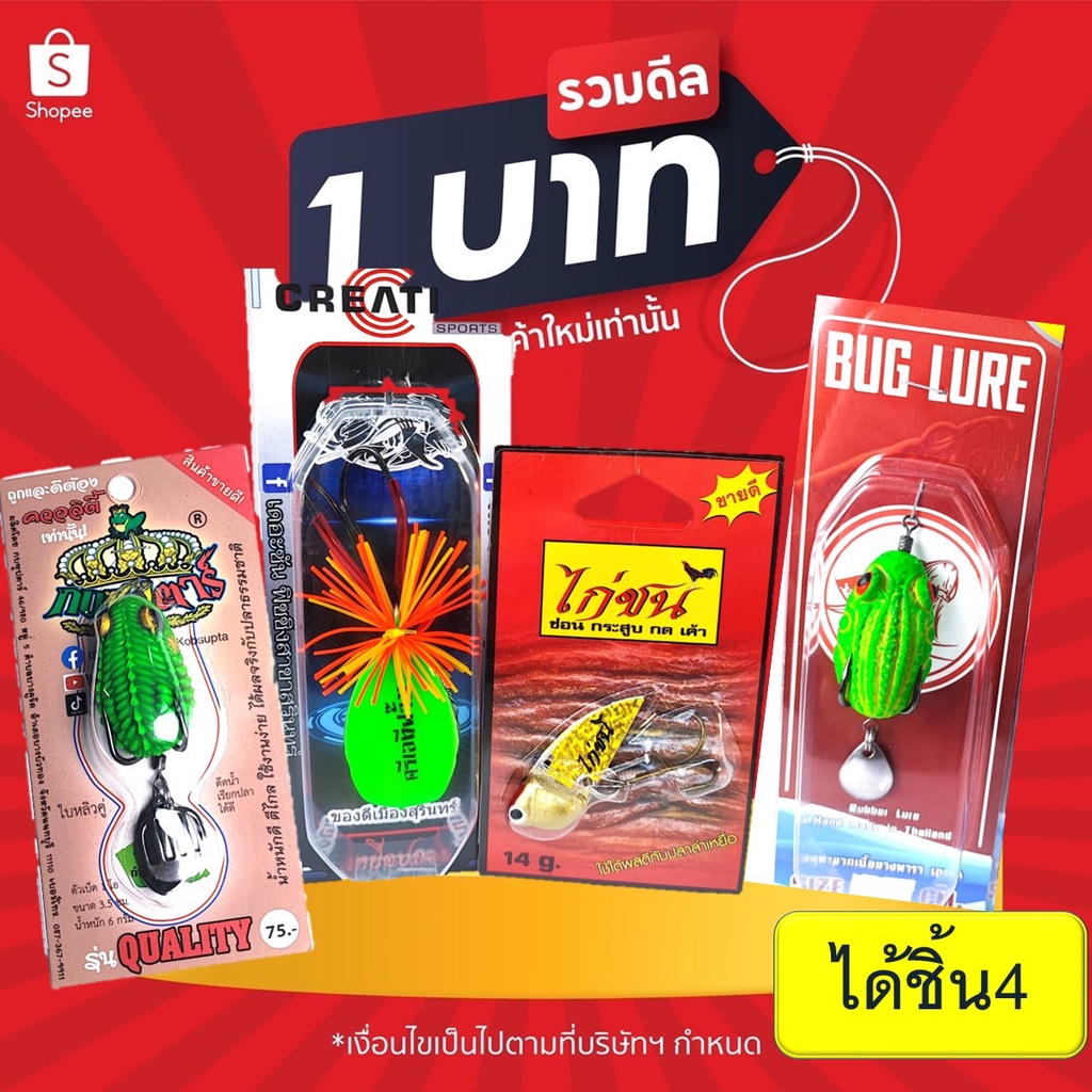 โปร 1 บาท ไอดีใหม่ เหยื่อตกปลา เหยื่อยาง สุ่ม เหยื่อ กบกระโดด/ส่าย + กระดี่ + กบยาง ได้ทั้งหมด 2 -4ชิ้น