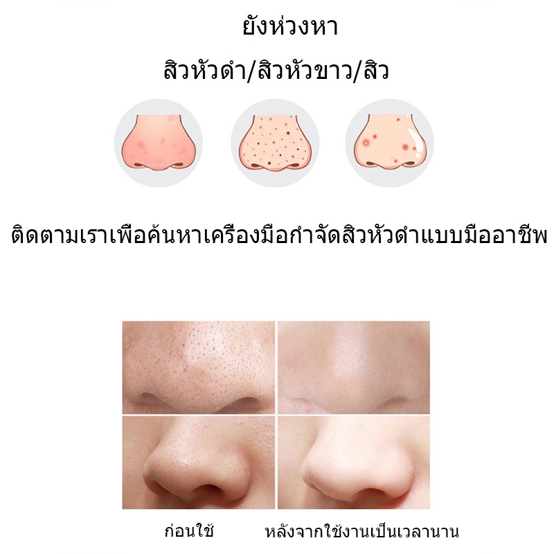 ... กใช้งานได้หลากหลายแบบ 👉🏻 ชาร์จแบตด้วยสาย USB ใช้ได้ถึง 150 นาที/ชาร์จ สะดวก ไร้สาย 👉🏻 กำจัดสิ่งสกปรก ทำความสะอาดล้ำลึก 👉🏻 กำลังตัวเครื่องดูดแรง เข้าถึงผิวได้จริง . เคล็ดลับการใช้งานเครื่องดูดสิว . เมื่อได้รับสินค้าแล้วให้ชาร์จแบตก่อนนะค่ะ ❌ขณะชาร์จไม่ควรใช้งานไปด้วย❌ . การดูดสิวที่ถูกต้อง ควรเตรียมผิวหน้าให้พร้อมก่อนใช้งาน💦 โดยการเปิดรูขุมขนที่ผิวหน้า 💦 ใช้ผ้าชุบน้ำอุ่นวางโปะไว้ที่ใบหน้า ทิ้งไว้สัก 10 นาที ความอุ่นจะทำให้รูขุมขนบนใบหน้าเปิดเพื่อที่จะได้ใช้เครื่องดูดสิวได้ง่ายขึ้นค่ะ . ขั้นตอนการใช้เครื่องดูดสิว ✅แนะนำใช้เป็นหัวเล็กในการดูดสิวนะค่า ส่วนหัวใหญจะเหมาะกับดูดสิ่งสกปรกที่อยู่ที่ผิวหน้ามากกว่าจ้า ส่วนหัวที่แถมไปให้จะสังเกตได้ไม่ยากจ้า ✅กดปุ่มบน เปิดเครื่อง ✅ปุ่มล่างปรับระดับได้ 3 ระดับ (สังเกตที่หน้าจอ) แต่ละระดับจังหวะการดูดจะต่างกัน ✅กดเลือกให้เหมาะกับสภาพผิวหน้าของเรา หรือระดับที่เราต้องการ [Oily] ระดับต่ำ สำหรับผิวที่บอบบาง [Normal] ระดับแรง สำหรับดูดสิวเสี้ยน [Dry] ระดับต่ำ จะเป็นจังหวะ ดูด หยุด ดูด หยุด เหมาะสำหรับการทำความสะอาดผิวที่ล้ำลึก . เวลาดูดให้หัวดูดเคลื่อนที่อย่างช้าๆ ห้ามดูดค้างอยู่จุดๆเดียวกันนานเกินไป เพราะการดูดจะทำให้ผิวแดง ช้ำได้ . การใช้งานขึ้นอยู่กับสภาพผิวหน้า ผิวหน้าที่รูขุมขนกว้างจะดูดสิวได้ดีกว่าผิวหน้าที่เรียบเนียน . ❌เครื่องนี้เหมาะสำหรับดูดสิวหัวดำ ไม่แนะนำให้ใช้กับสิวอักเสบ สิวที่ไม่มีหัว สิวฝังลึก❌ . 💟 อุปกรณ์ในกล่องประกอบด้วย 💟 1. หัวดูดสิวจำนวน 6 แบบ 2. สายชาร์จ USB 1 เส้น [แถมฟรี] 3. คู่มือการใช้งาน . ⚠️ หากเกิดปัญหาในการใช้งาน ⚠️ สามารถเปลี่ยน/คืนได้ใน 7 วันหลังจากวันที่ได้รับสินค้า 1:การส่งคืนอุปกรณ์ต้องครบพร้อมกล่องสินค้า 2:และอย่าเพิ่งกดรับสินค้าน้า เดี๋ยวจะกดปุ่มคืนสินค้าไม่ได้ค่ะ 3:การกดปุ่มรับสินค้า คือการยอมรับคุณภาพสินค้า กรณีที่จะส่งสินค้าคืน ลูกค้าจะต้องออกค่าส่งเอง สินค้าที่แถมให้ฟรี ไม่รับเปลี่ยนคืนนะค่ะ กราบขอบคุณที่เข้าใจกันค่า (◡‿◡❀) 🙏 .#เครื่องดูดสิว #เครื่องดูดสิวเสี้ยน #หน้าใสไร้สิว #ไร้สิวเสี้ยน #กําจัดสิว #ผิวเนียน #อุปกรณ์เสริมความงาม