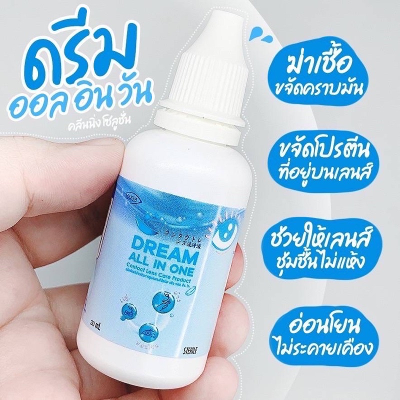 ผลิต = เดือน11 ปี2023 หมดอายุ = เดือน10 ปี2026 New‼️‼️‼️ น้ำยาล้างคอนแทคเลนส์ DREAM ALL IN ONE 30 ml. ล้าง แช่ หยอด จบครบใน1เดียว มีอย ไทย . เลขที่ 54-2-2-2-0005484