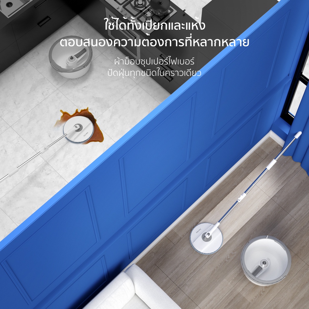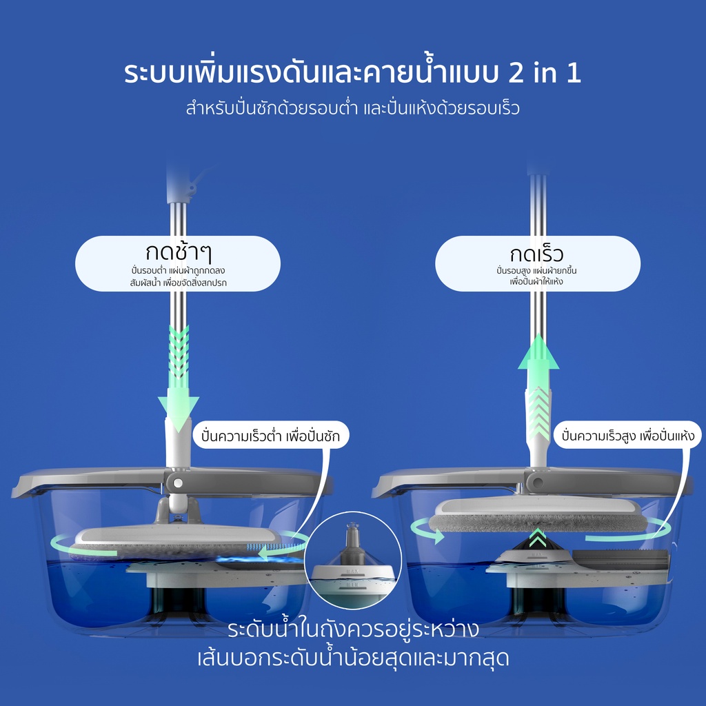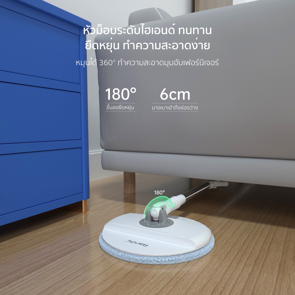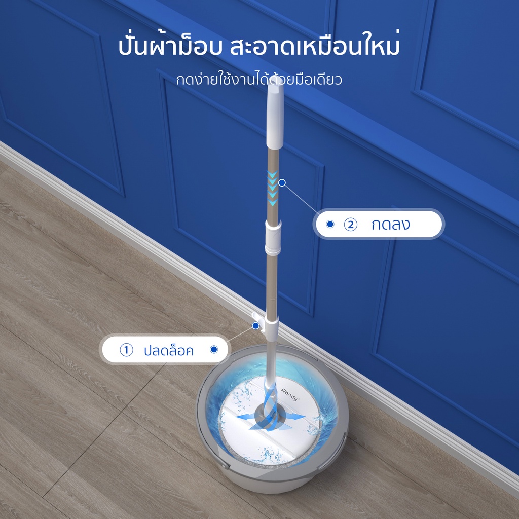 RANDY ชุดถังปั่น รุ่นพรีเมี่ยม พร้อม ไม้ถูพื้น ไมโครไฟเบอร์ ไม้ม็อบ ถัง ไม้ถูพื้นถังปั่น พกพาสะดวก ถังปั่นไม้ม๊อบ