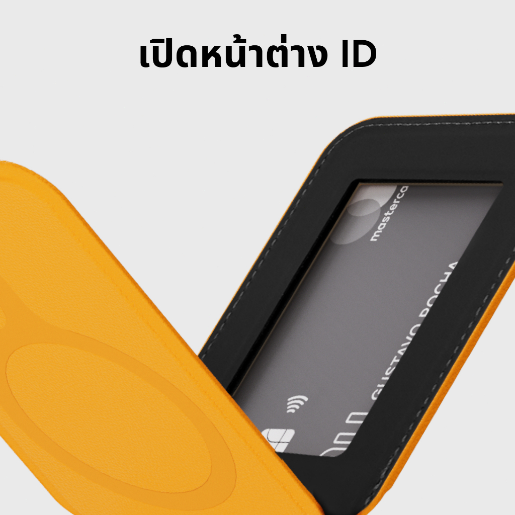 ... 5 นิ้ว/100*65*9 มม น้ำหนัก: 2 ออนซ์/75 กรัม วัสดุ: หนังวีแกน, ไฟเบอร์กลาส, แม่เหล็ก, แผ่นโลหะ 2 โหมดการรับชม: แนวตั้งและลอยตัว สามารถเก็บบัตรได้สูงสุด 2 ใบ ทำงานร่วมกับอุปกรณ์เสริมที่รองรับ MagSafe หมายเหตุ: ไม่ส่งผลต่อการใช้งาน Apple Pay เคล็ดลับการใช้งาน 1. ปัดการ์ดที่เปิดใช้งาน NFC ได้อย่างง่ายดาย: ใช้การ์ดที่เปิดใช้งาน NFC เพียงใบเดียวในกระเป๋าเงินเพื่อหลีกเลี่ยงการทำธุรกรรมโดยไม่ได้ตั้งใจด้วยบัตรที่ไม่ถูกต้อง 2. เลื่อนการ์ดออกอย่างง่าย ๆ: นำการ์ดของคุณเข้าและออกจากหน้าต่าง ID ที่เปิดอยู่ด้านหลังโดยใช้สไลด์นิ้วหัวแม่มือ 3. ปรับมุมได้สูงสุด 180 องศา โปรดทราบ:(สำหรับ iPhone 14/15 Pro โปรดทราบว่า Flash Wallet จะทับซ้อนกับขอบกล้องเล็กน้อย แต่จะไม่รบกวนการใช้งานกล้องปกติ)