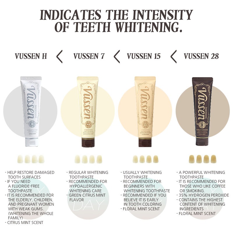 [Vussen] ยาสีฟันไวท์เทนนิ่ง 1 ซี่ สไตล์เกาหลี