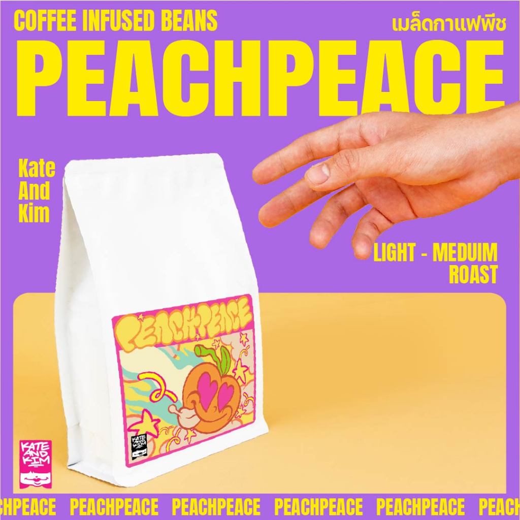 ((Kate & Kim)) เมล็ดกาแฟคั่ว กลิ่น "พีช" Coffee Bean Peach Flavor Blend Infused *แต่งกลิ่น