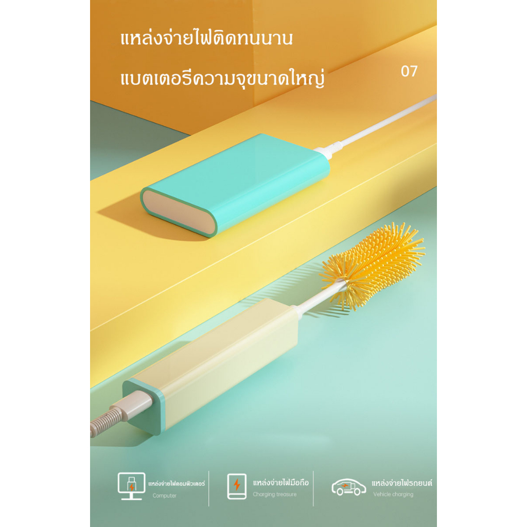 Electric Bottle Brush Cleaner แปรงล้างขวดนมไฟฟ้า 2 in 1 มี 2 หัวแปรงให้เลือก พร้อมที่ล้างจุกนม แปรงล้างขวดนมซิลิโคน