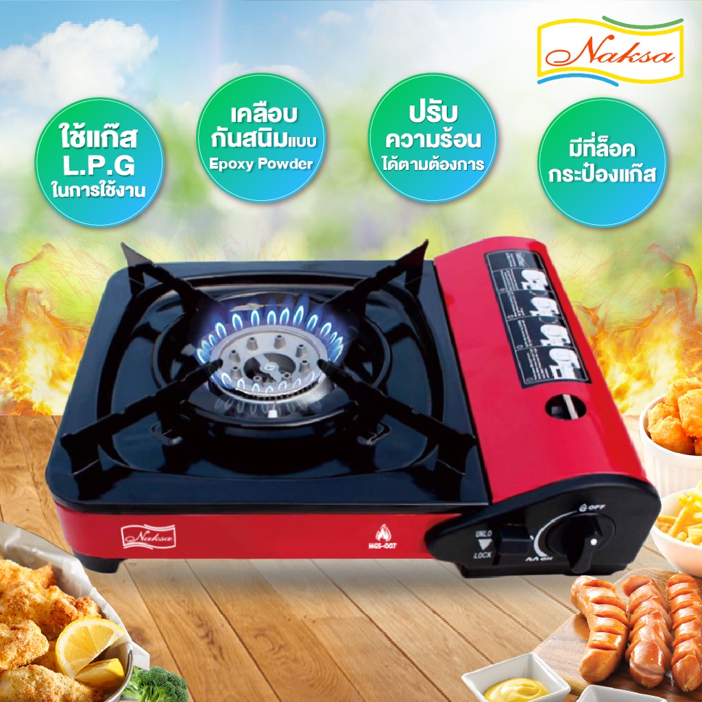 ‼️คำเตือน กรุณาอ่านรายละเอียดสินค้าให้ครบถ้วน ก่อนกด " เลือกสินค้า " นะคะ‼️ เตาแก๊สปิคนิค OTTO รุ่น GS-800(คละสี) / NAKSA รุ่น NGS-008/NGS-007 (แถมฟรี!!!กระเป๋าเก็บเตา) -มีตัวล็อกกระป๋องแก๊สเพื่อความปลอดภัย เหมาะสำหรับใช้งานคู่กับแก๊สกระป๋อง -ตัวเตาเคลือบกันสนิม แบบ Epoxy Powder เเละยังเป็นเตาแ