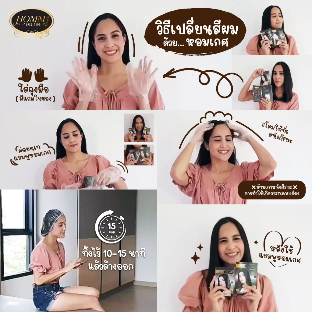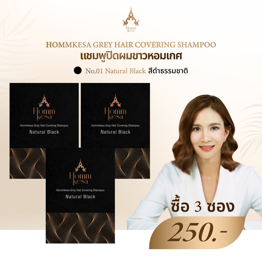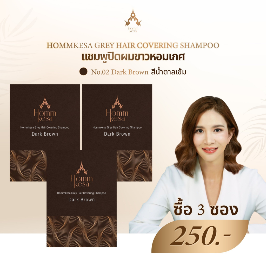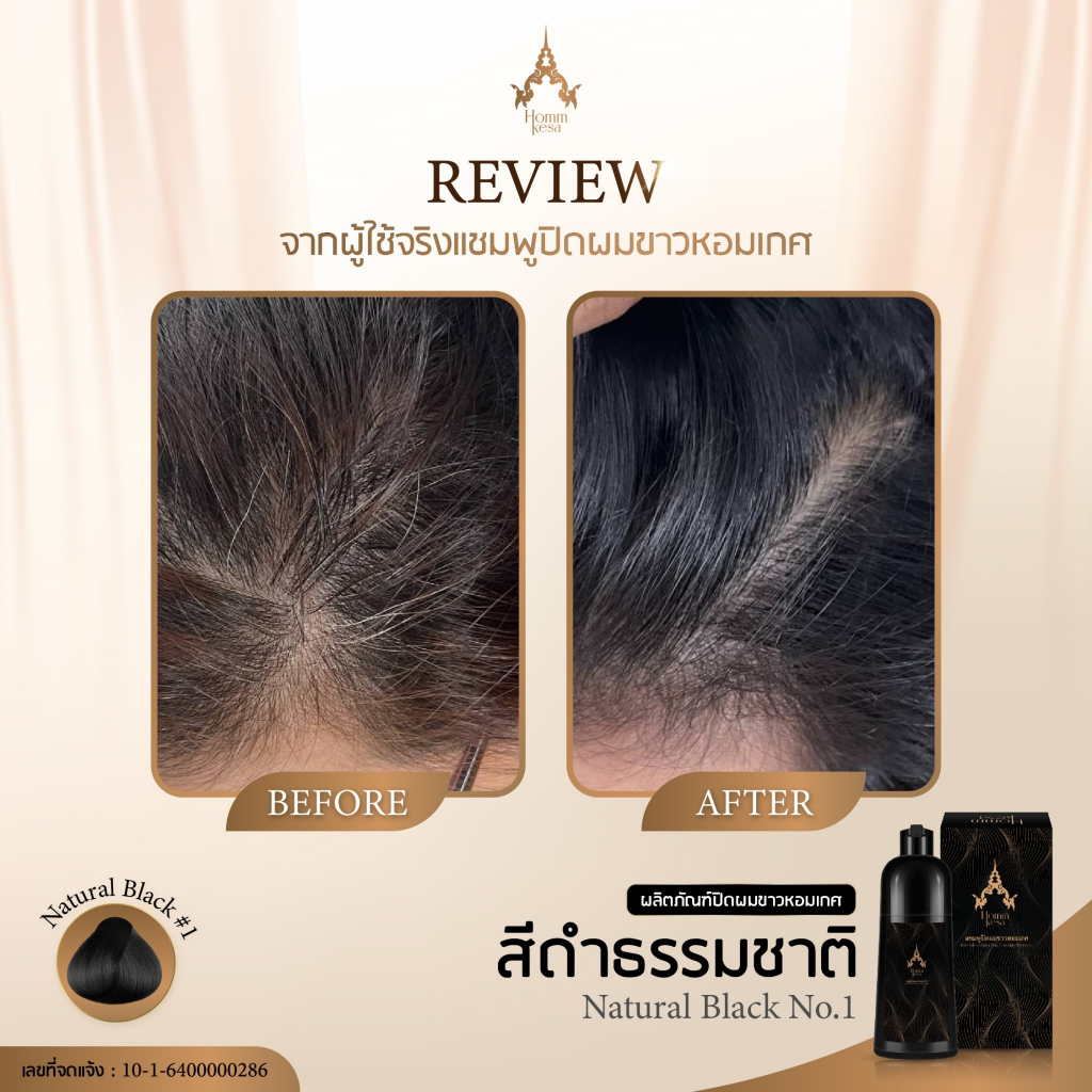 ... รลับเฉพาะนี้ไปด้วยกัน ที่ช่วยฟื้นบำรุงเส้นผมให้นุ่มลื่น สุขภาพดี อย่างเป็นธรรมชาติ ปิดผมขาวได้อย่างเนียนสนิท กลิ่นหอมสดชื่นจากผลไม้ไทย ปราศจากแอมโมเนีย 100% ไม่มีพาราเบน ไม่มีกลิ่นฉุน มีแต่กลิ่นหอมสดชื่นจากผลไม้ ไม่ก่อให้เกิดการแพ้ อ่อนโยน ปลอดภัย แชมพูปิดผมขาวหอมเกศกล้ารับประกัน! วิธีใช้💡 แชมพูปิดผมขาวหอมเกศ คล้ายยาย้อมผม แต่จะสะดวก ใช้ง่ายและสามารถทำได้เองที่บ้าน ✅ใช้บนผมหมาด(ใช้น้ำธรรมดาล้างผมและใช้ผ้าซับเบาๆ) ✅ใส่ถุงมือโชลมแชมพูปิดผมขาวหอมเกศให้ทั่วโดยเน้นบริเวณที่ผมหงอกขาวใส่แชมพูจนชุ่ม นวดเบาๆจนเกิดฟอง ✅ทิ้งไว้10-30นาทีหรือสังเกตผมขาวติดสี ล้างออกด้วยน้ำธรรมดาจนสะอาด โปรดทราบ:อย่าให้โดนตา ถ้าบังเอิญเข้าตา กรุณาล้างออกด้วยน้ำสะอาดทันที เก็บให้พ้นมือเด็ก ห้ามให้เด็กอายุต่ำกว่า 10 ปีใช้ สี : แชมพูปิดผมขาว หอมเกศ มี 2 เฉดสีให้เลือก Natural Black สีดำธรรมชาติ Dark Brown สีน้ำตาลเข้ม