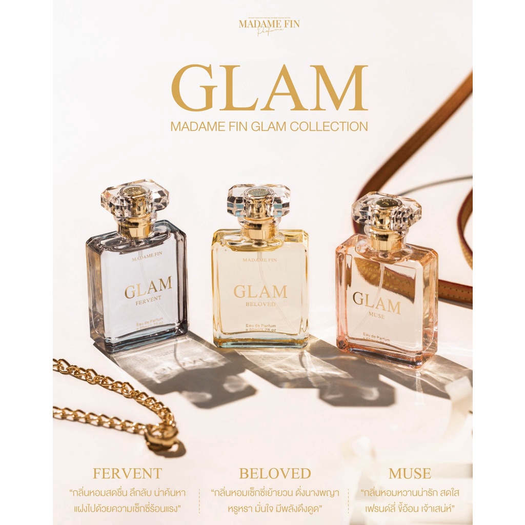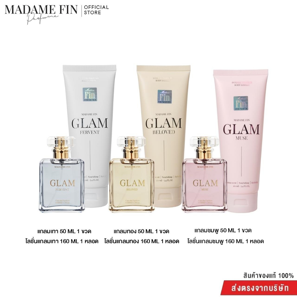 MADAME FIN โปรโมชั่นเซ็ตน้ำหอมมาดามฟินรุ่นใหม่ GLAM 3 ขวด รับประกันสินค้าจากบริษัทของแท้100%แถมโลชั่นGLAM 3 หลอด Glam 3 กลิ่น - Muse - Ferven - Beloved