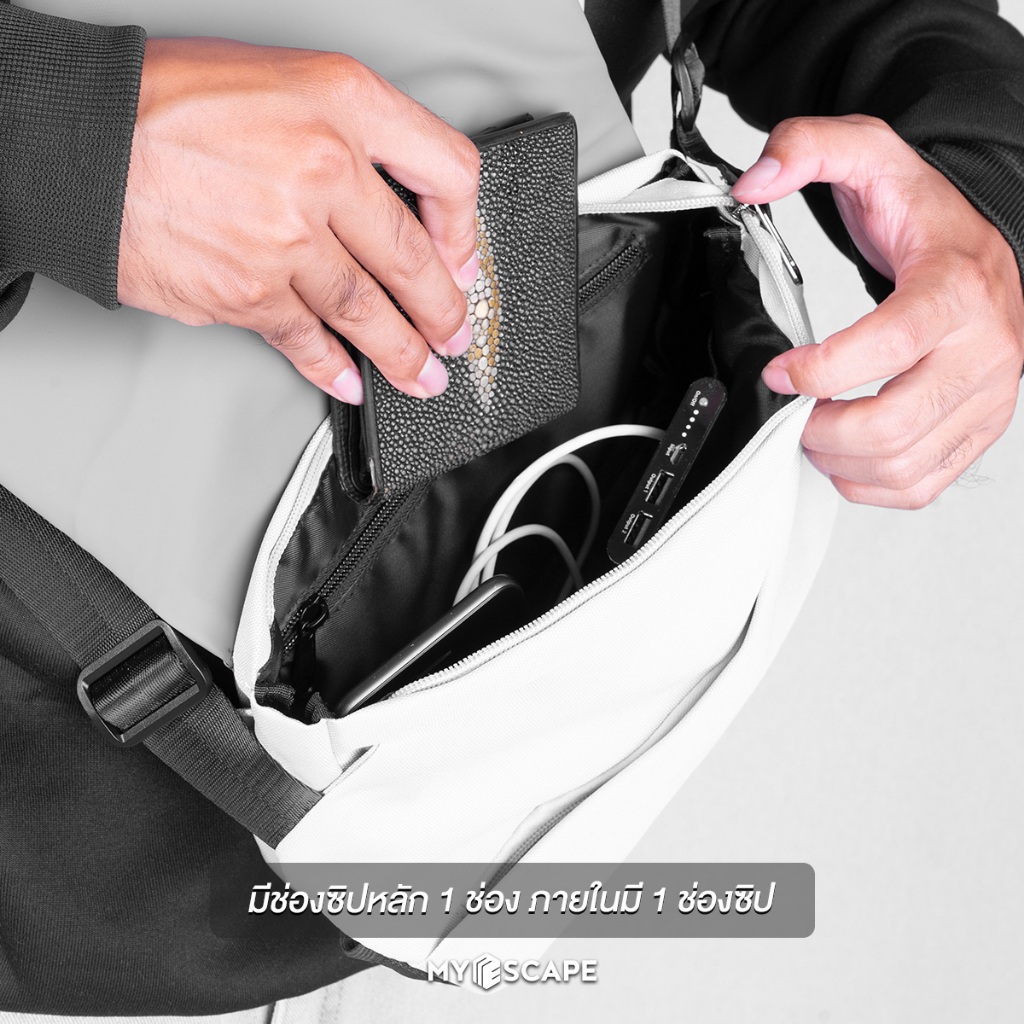 กระเป๋าสะพายข้าง รุ่น NASSER BY MYESCAPEBAG (ตัวล็อคเป็นแม่เหล็ก+ช่องใส่ขวดน้ำ+ สายรัดขาตั้งกล้องหรือร่ม)