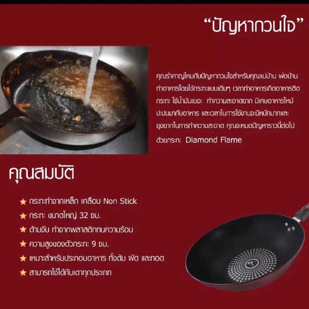 ➦ ด้านในเคลือบด้วยผงเพชร 3 ชั้น ช่วยป้องกันการขูดขีด การเกิดสนิม และการสะสมของเชื้อแบคทีเรีย ➦ ประหยัดพลังงาน เพราะร้อนเร็ว ไม่ต้องใช้ไฟแรงในการปรุงอาหาร ➦ กระทะทนความร้อนได้ดี อาหารสุกเร็ว อาหารไม่ติดกระทะ ทำความสะอาดได้โดยง่าย ➦ ด้ามจับพลาสติกซิลิโคนทนความร้อน โค้ง จับได้สะดวก ถนัดกระชับ ➦
