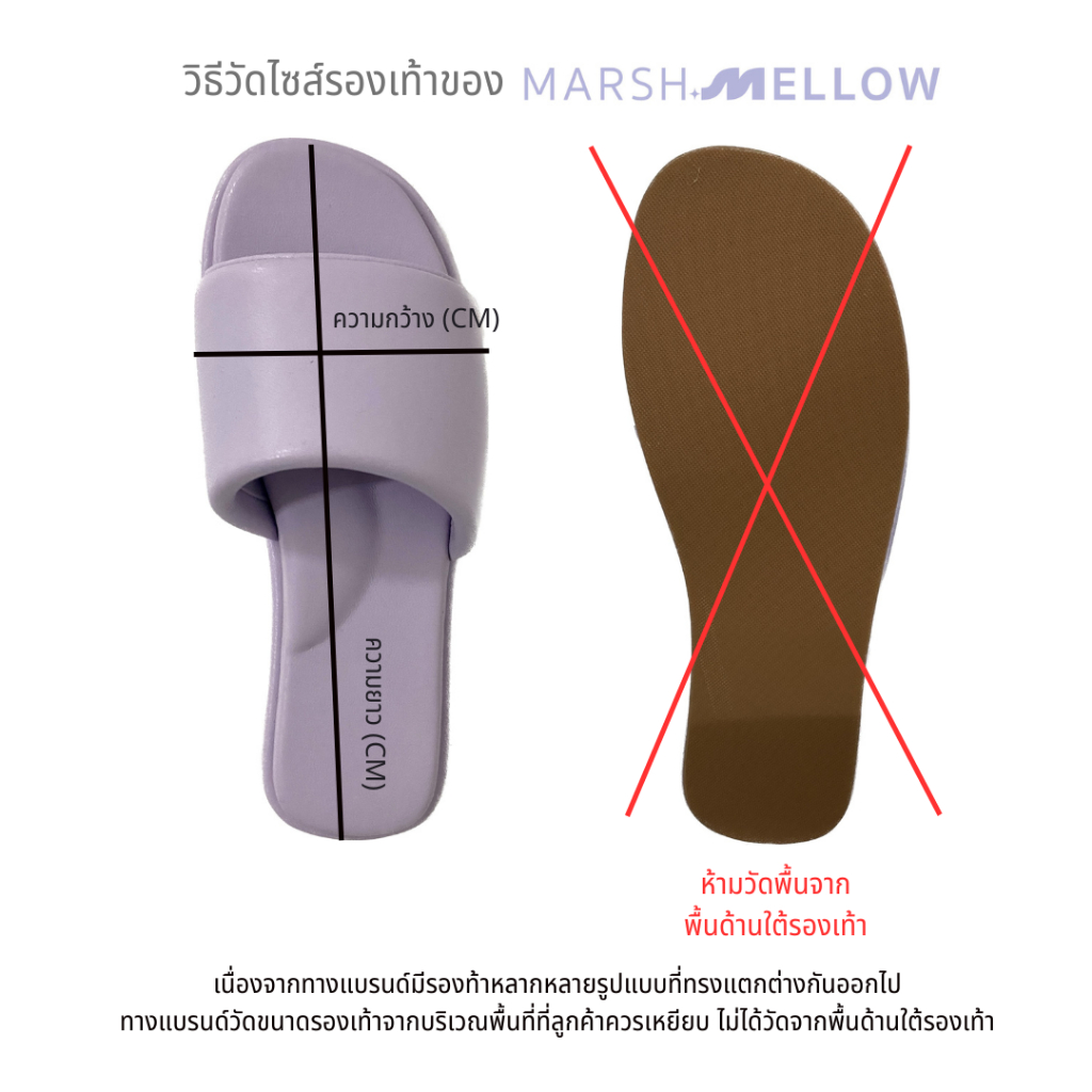 ... จนถึงส้นเท้า ✔วัดความกว้างเท้า ส่วนที่กว้างที่สุดของเท้าจากซ้ายไปขวา 👉เท้าปกติ : แนะนำบวกเพิ่ม 1 ไซส์ 👉เท้าอูม/กว้าง : แนะนำบวกเพิ่ม 2 ไซส์ ไซส์ : ยาว/กว้าง (ขนาดเป็นเซ็นติเมตร) 36: 22/ 9 37: 23.5 /9.5 38: 24/ 9.5 39: 24.5 /10 40: 25/ 10 41: 25.5/ 10.5 42: 26/ 10.5 L :27/ 10.5 XL: 28/ 11 💥กติกาของทางร้าน💥 ✅เมื่อได้รับสินค้า กรุณาถ่ายวิดิโอทุกครั้งก่อนเปิดกล่อง ✅กรณีสินค้ามีปัญหา ชำรุด ส่งผิดสี ผิดไซส์ หากมีหลักฐานยืนยันเป็นคลิปวิดิโอ ทางร้านรับเปลี่ยนสินค้าให้ใหม่ ✅กรณีสินค้าหมด ทางแอดมินจะมีการติดต่อคุณลูกค้าและแจ้งให้ทราบ 🔥วิดิโอต้องถูกบันทึกก่อนที่จะมีการเปิดกล่องเท่านั้น งดเปิดกล่องแล้วถ่ายทีหลัง ทางร้านไม่รับเปลี่ยนสินค้าทุกกรณี หากไม่อยู่ตามเงื่อนไขตามที่กล่าวไว้ด้านบน🔥 #Marshmellow #รองเท้าแตะ #รองเท้าแตะผู้หญิง #รองเท้าผู้หญิง #รองเท้าแฟชั่น #รองเท้าแตะสุขภาพ #รองเท้าสุขภาพ #รองเท้าใส่ทุกวัน #รองเท้า #รองเท้าส้นสูง #รองเท้าส้นเตี้ย #รองเท้าแตะส้นแบน #รองเท้าทำงาน #รองเท้าส้นกลม #รองเท้าส้นเข็ม #รองเท้าส้นสูง1นิ้ว #รองเท้าส้นสูง2นิ้ว #รองเท้าส้นสูง3นิ้ว #รองเท้าส้นตึก #รองเท้าส้นแก้ว #รองเท้าคัทชูผู้หญิง #รองเท้าส้นสูงผู้หญิง #รองเท้าใส่ทำงาน #รองเท้าใส่เที่ยว #รองเท้าหาหรัว #รองเท้าวัยรุ่น #รองเท้าลำลอง #รองเท้าเกาหลี #รองเท้ารัดส้น #พื้นนิ่ม #ไม่ลื้น #Fashion #Fashion Shoes