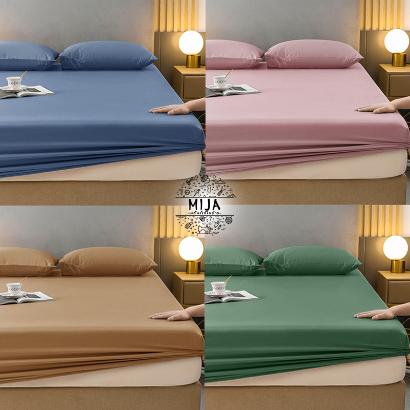 MIJA ผ้าปูที่นอน 3.5ฟุต/5ฟุต/6ฟุต ชุดเครื่องนอนสีพื้น ผ้าปูที่นอนกันไรฝุ่น ผ้ารองกันเปื้อนที่นอน ผ้าปูที่นอนมินิมอล