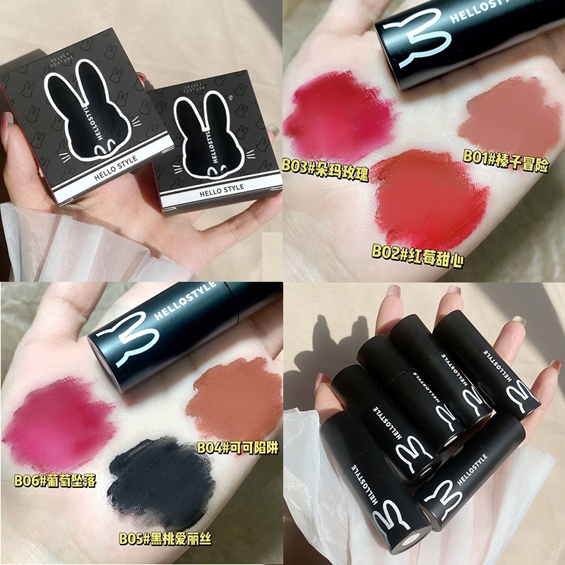 HS-A09 ลิปสติก เนื้อเวลเวท สีสวยจี๊ดจ๊าด เปลี่ยนลุคไม่ซ้ำ ติดทนนาน กันน้ำ มีเฉดสีให้เลือก 6 เฉดสี