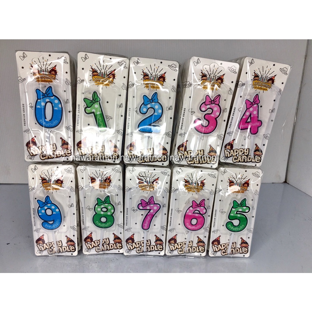 เทียนตัวเลข ยกห่อ 10ชิ้น เลขเดียวกัน เทียน เทียนวันเกิด เทียนปักเค้ก เทียน เลข0-9 คละสี