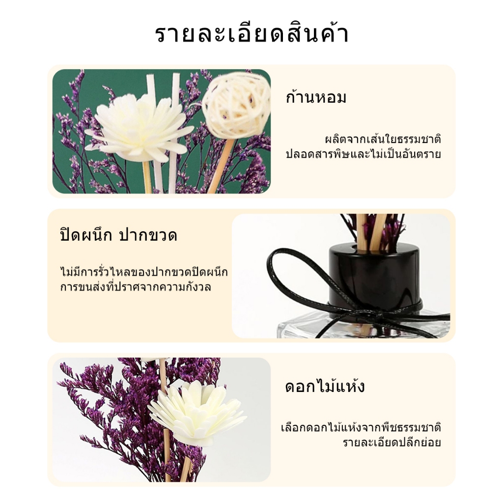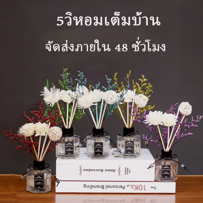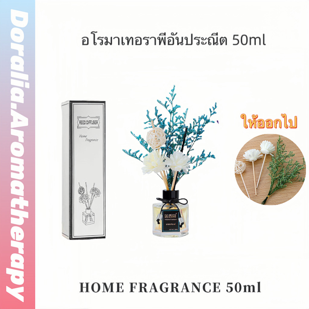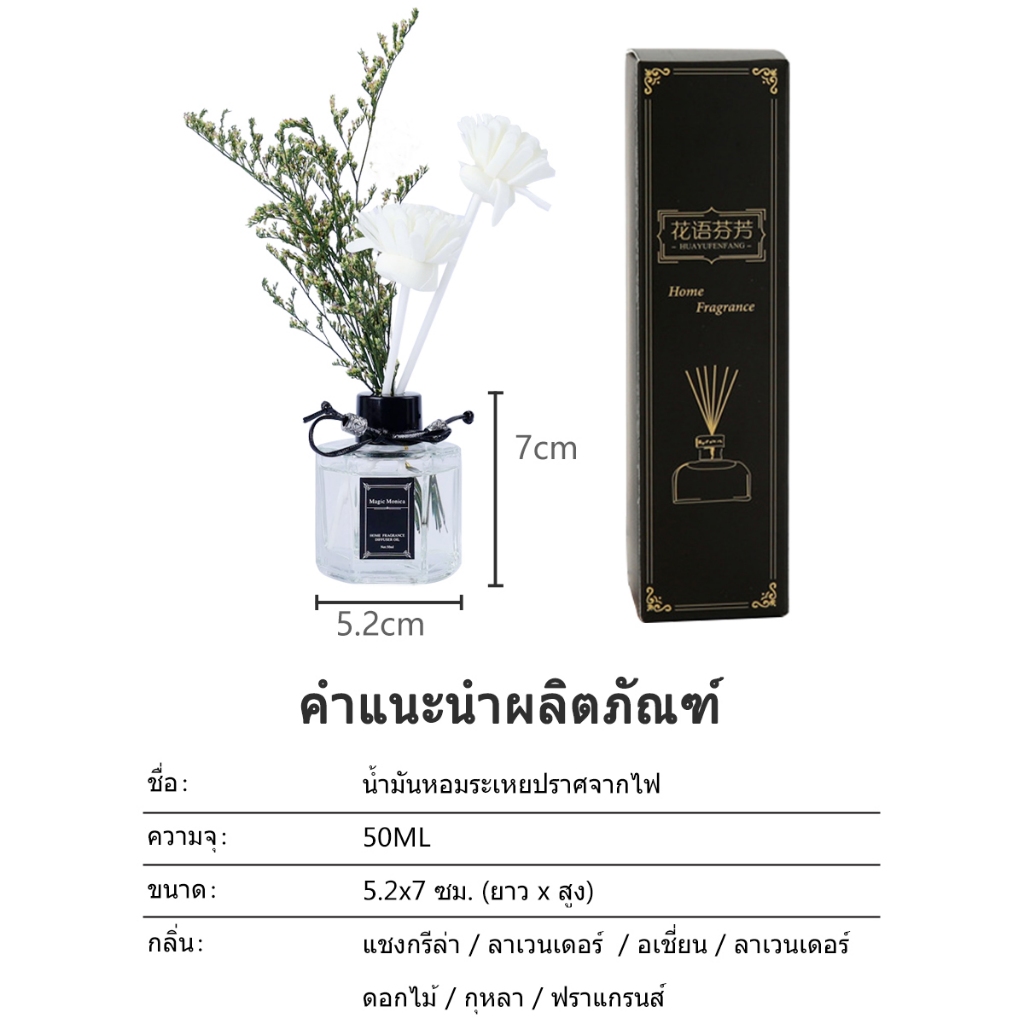 พร้อมส่ง ก้านไม้หอมปรับอากาศ น้ำมันหอมระเหย ดับกลิ่นห้องน้ำ ของขวัญ พร้อมกล่อง 50มล ดอกไม้แห้ง ก้านน้ำหอม น้ำหอมอโรม่า