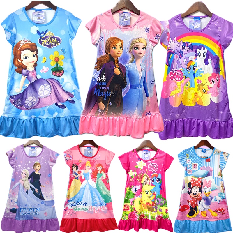 ชุดเดรสกระโปรงเด็กผู้หญิง ลายเจ้าหญิง เอลซ่า โซเฟีย ผ้ามันผ้าไมโค PM777(141-150)