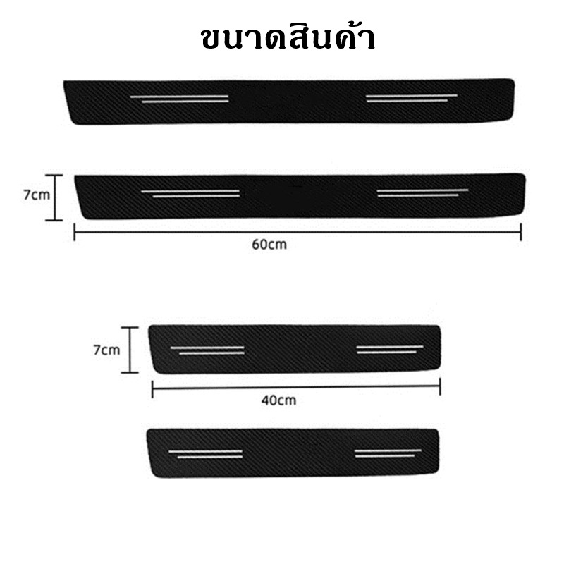 ✅สินค้าส่งจากไทย รายละเอียดสินค้า 1 ชุด มี 4 แผ่น กันรอยชายบันไดรถยนต์ - สี : คาร์บอนไฟเบอร์ ลายเคฟล่า - ขนาด: 60x7ซม.(2ชิ้น) + 40x7ซม.(2ชิ้น) - ติดตั้งง่าย ลอกออกไม่ทิ้งคราบ - กันน้ำ กันรอยขีดข่วนได้เป็นอย่างดี - เช็ดทำความสะอาดง่าย แนะนำการติดตั้ง ❌ไม่แนะนำให้ติดกาบพลาสติกรถ พื้นผิวไม่เ