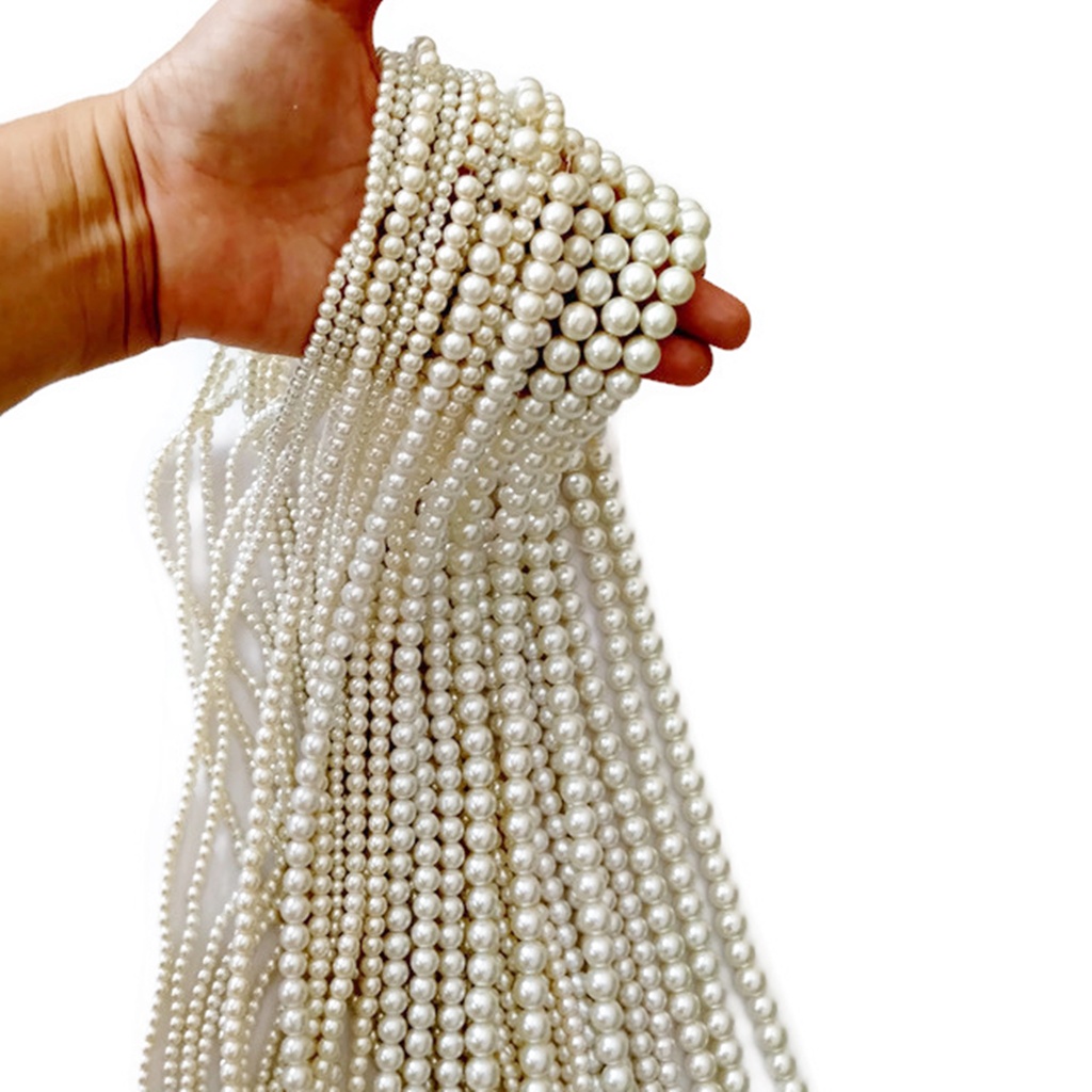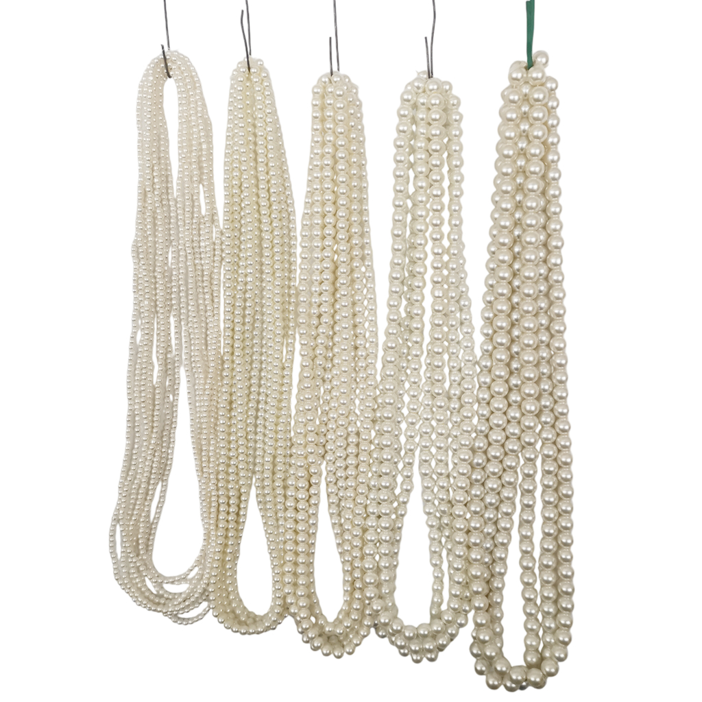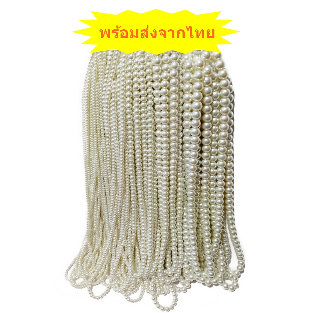 ลูกปัดมุกแก้ว แบบเส้นยาว ขนาด 4-6-8-10-12 มิล สำหรับงาน DIY งานประดิษฐ์ ต่างๆ