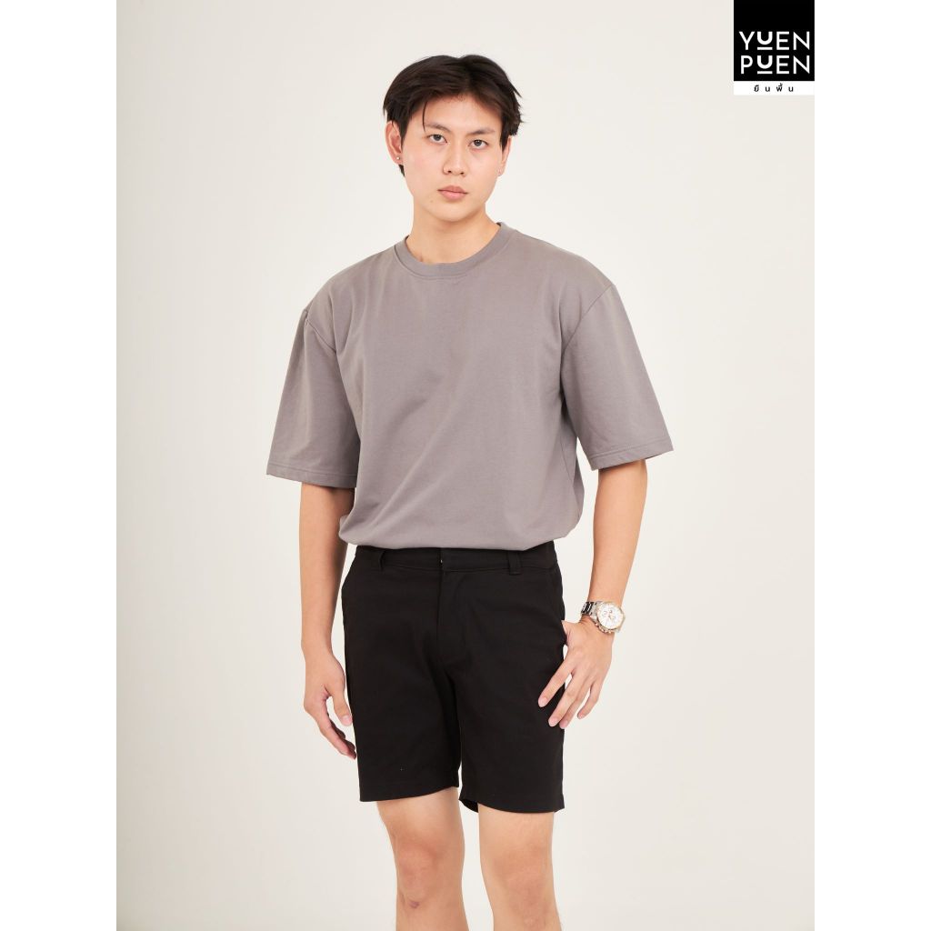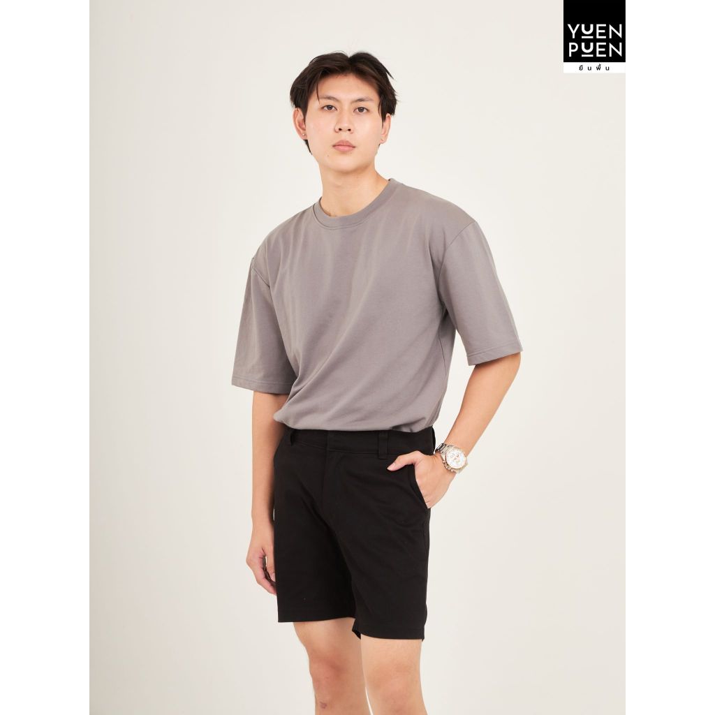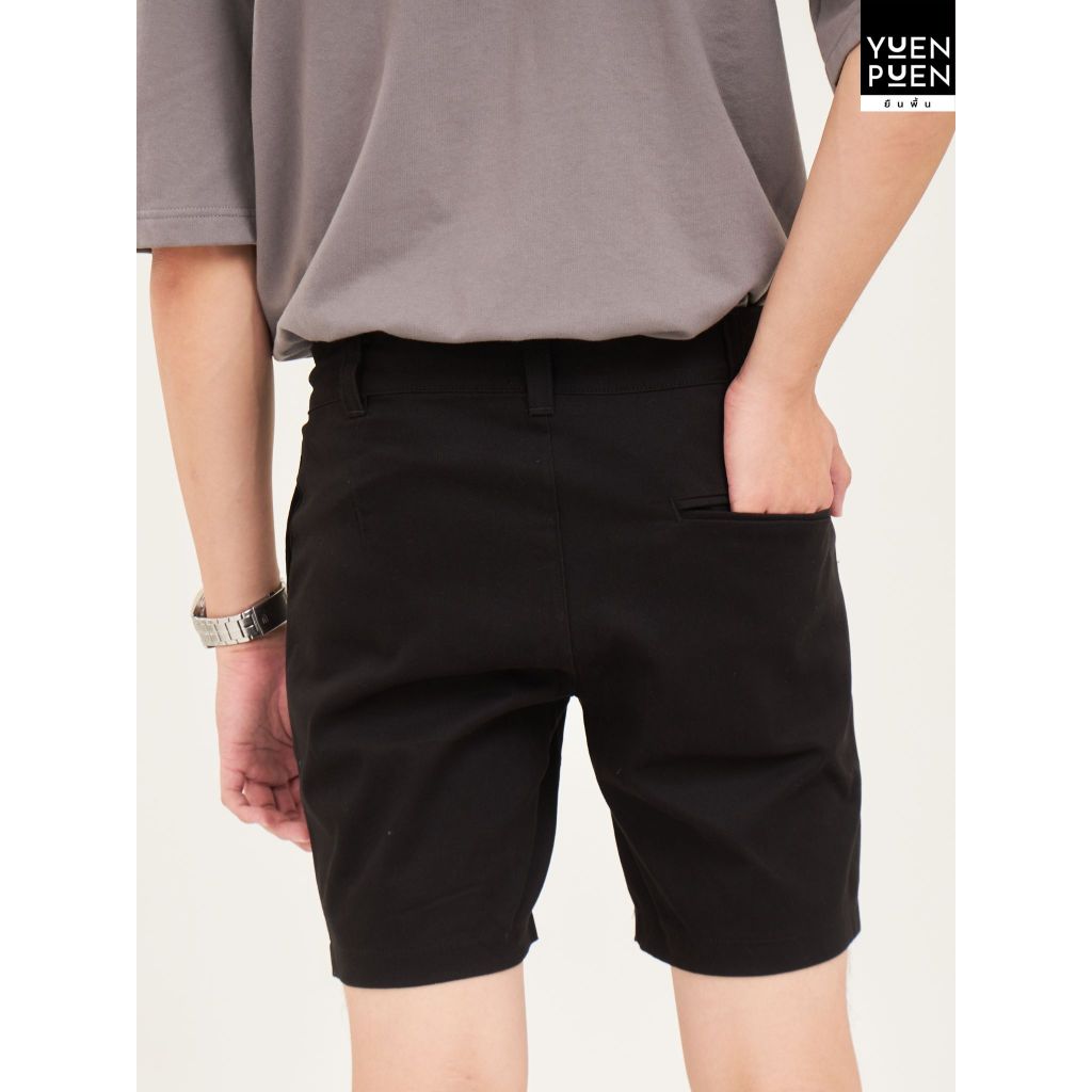 <ใส่โค้ด YUEOCT30 ลด15%>YuenPuen ยืนพื้น กางเกงขาสั้น สีดำ เนื้อผ้า Cotton & Spandex ยืดหยุ่น อยู่ทรง