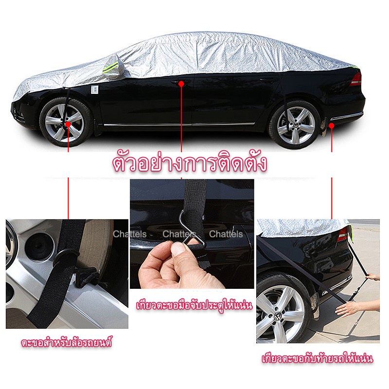 ผ้าคลุมรถครึ่งคัน กันรังสี UV กันฝน กันน้ำ100% เนื้อผ้าคุณภาพสูง ผ้าคลุมรถยนต์ ป้องกันรอยขนแมว