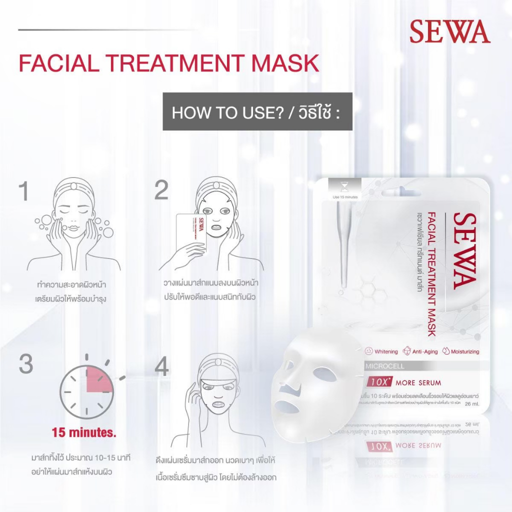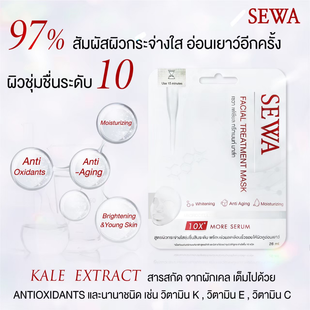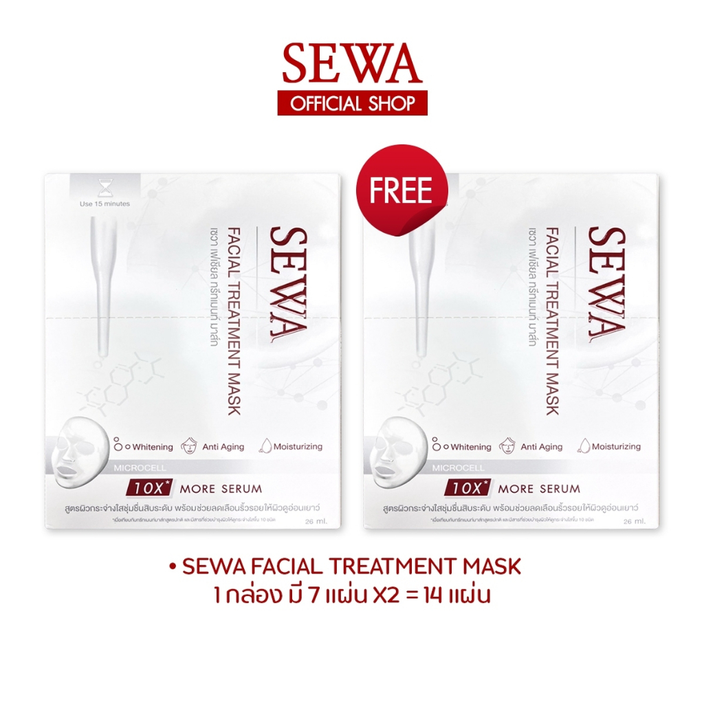 SEWA 1แถม1 แผ่นมาส์กหน้าเซวา Sewa Facial Treatment Mask ( ได้รับ 2กล่อง=14แผ่น )